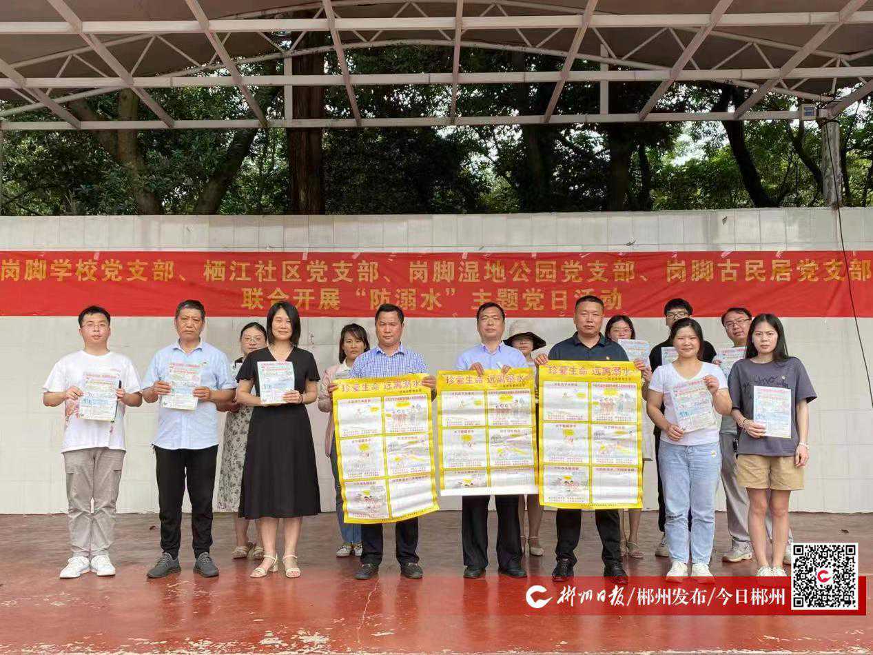 暑期临近,溺水事故高发。6月15日下午,苏仙区栖凤渡镇栖江社区党支部、岗脚村党总支走进岗脚学校,与岗脚学校党支部党员同志们一起携手开展了形式多样、内容丰富的“党建带队建假期防溺水”主题党日活动,把平安送进校园,确保孩子们远离溺水事故。