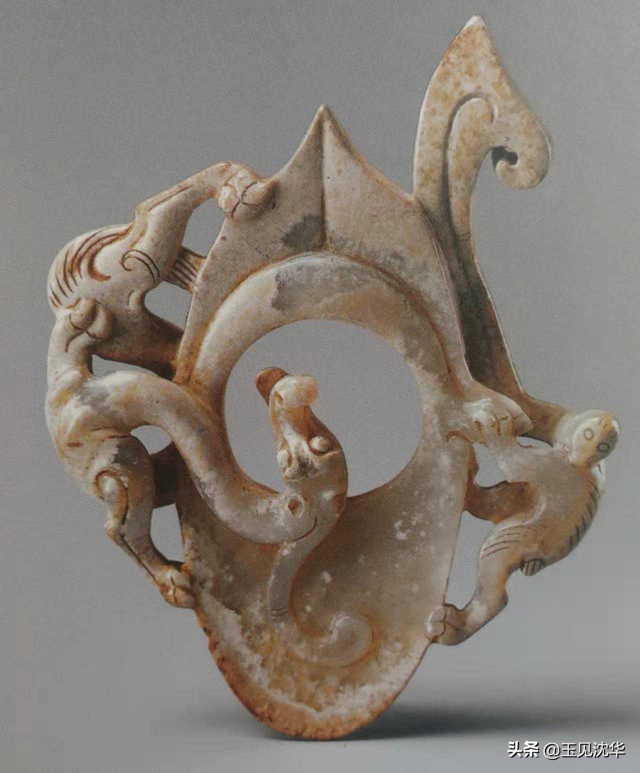 汉代玉器造型的风格特征除了镂空外,不同主题皆以云气化且标准化的身躯各部组合而成,不论是龙,凤或是兽为主题。
