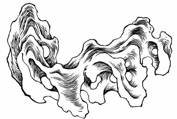 苏东坡也曾对他为一块收藏的雪浪石赋诗道:“画师争摹雪浪势,天工不见雷斧痕。”雪浪石有石破天惊的形态,虽鬼斧神工亦不能办也。在东坡的基础上,米芾更提出“瘦、绉、漏、透”的赏石四要领,至今仍是玩赏太湖石的圭臬。