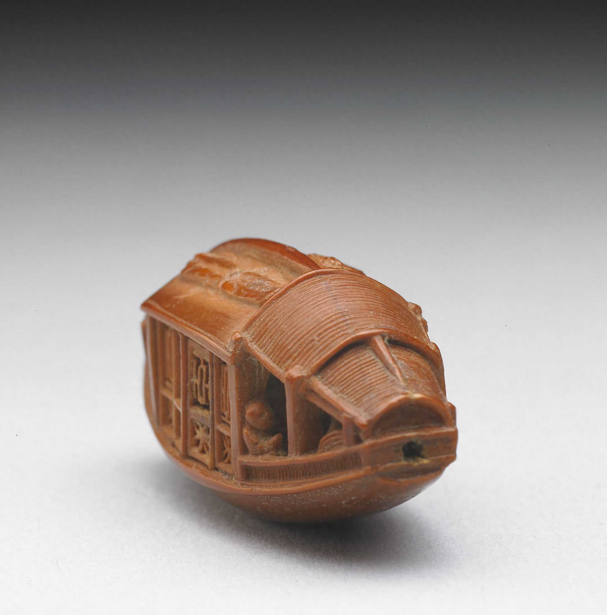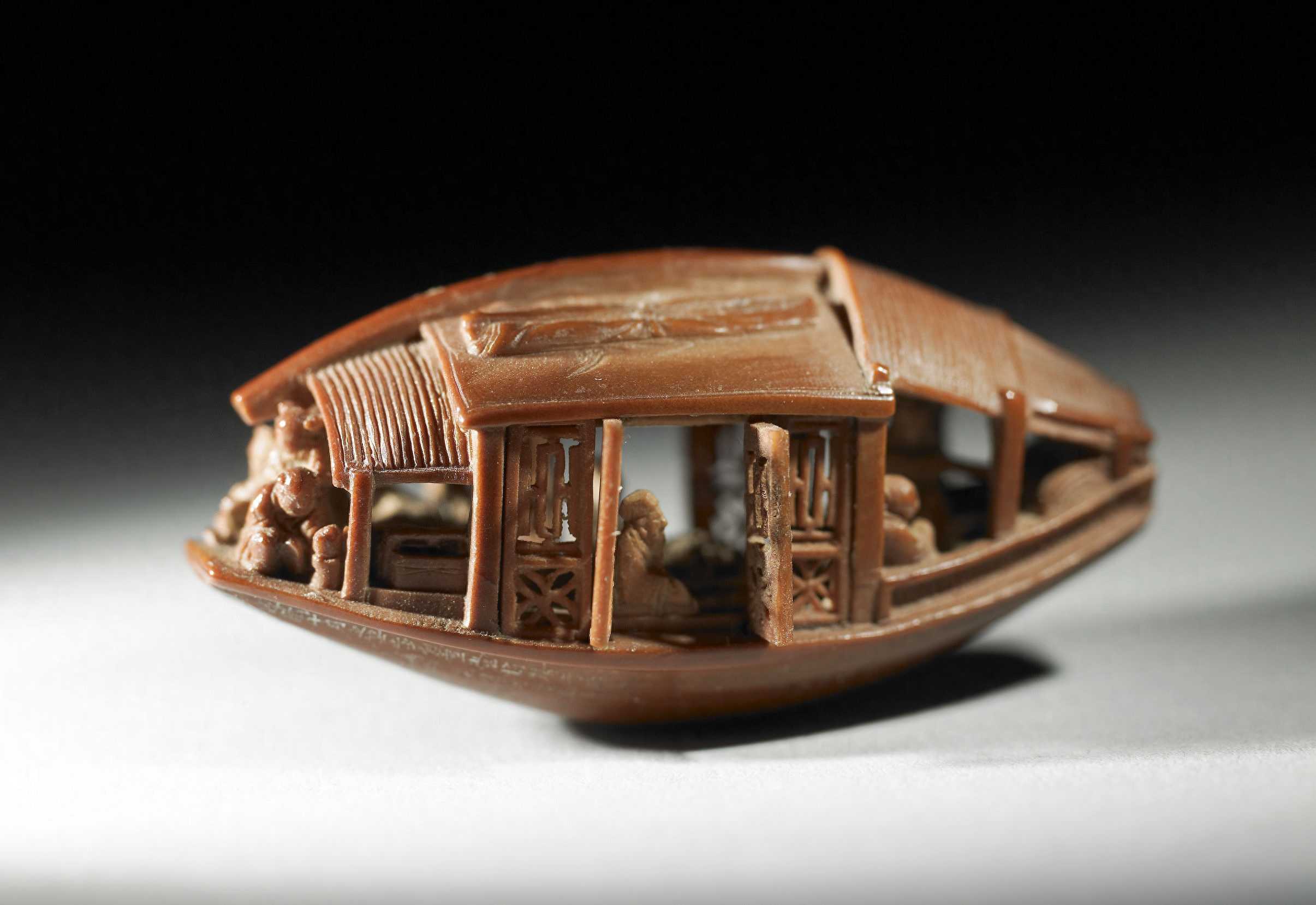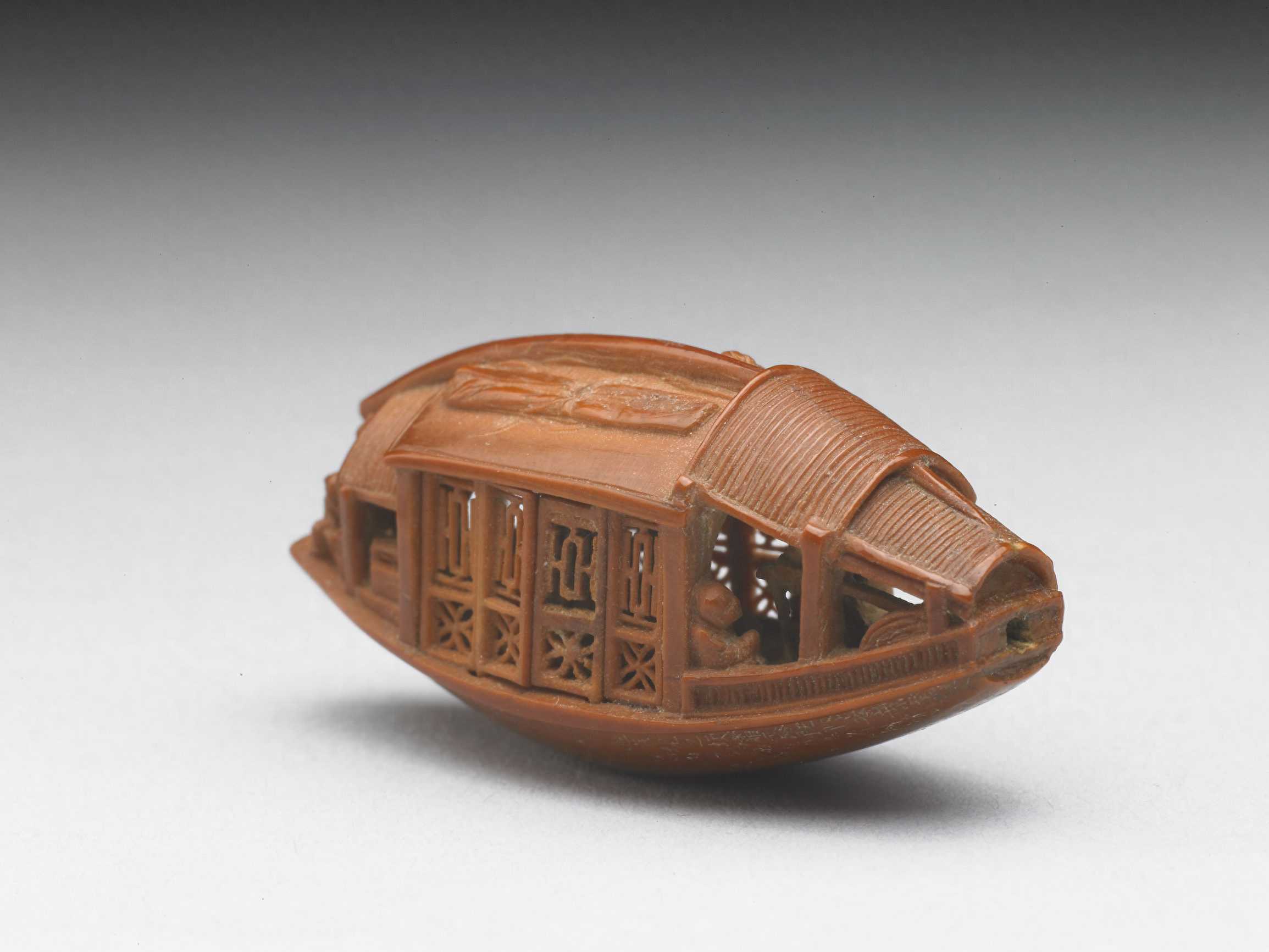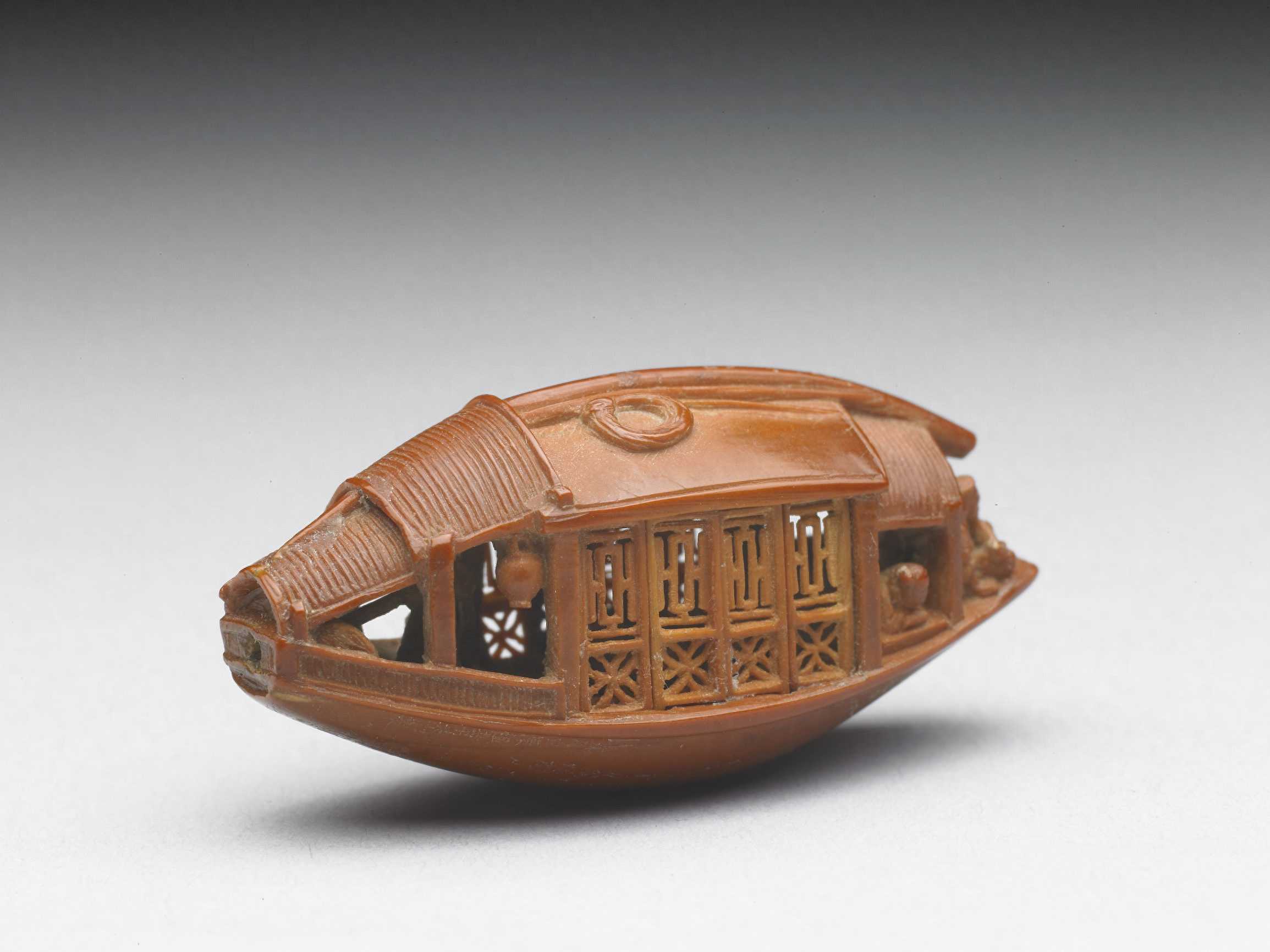 将千古传诵的文学名著,藉由微小核舟中的人物情态、空间配置与细节刻划点出月夜泛舟的意象