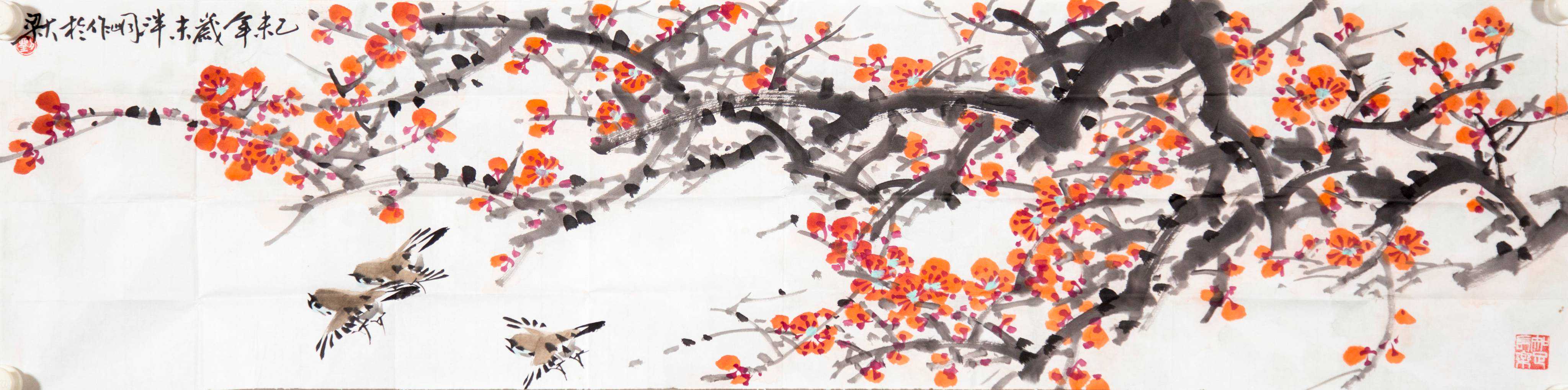 在几十年的艺术实践中,他通过对艺术地整合提炼,逐渐找到了一种属于自己的花鸟画语言,十分巧妙地将典雅与自然、飘逸与沉厚、简洁与繁复、严谨与率意融为一体,在意与物、形与神、动与静、墨与色、收与放等语境之间作巧妙的艺术处理,从而创造出独特的审美意境。