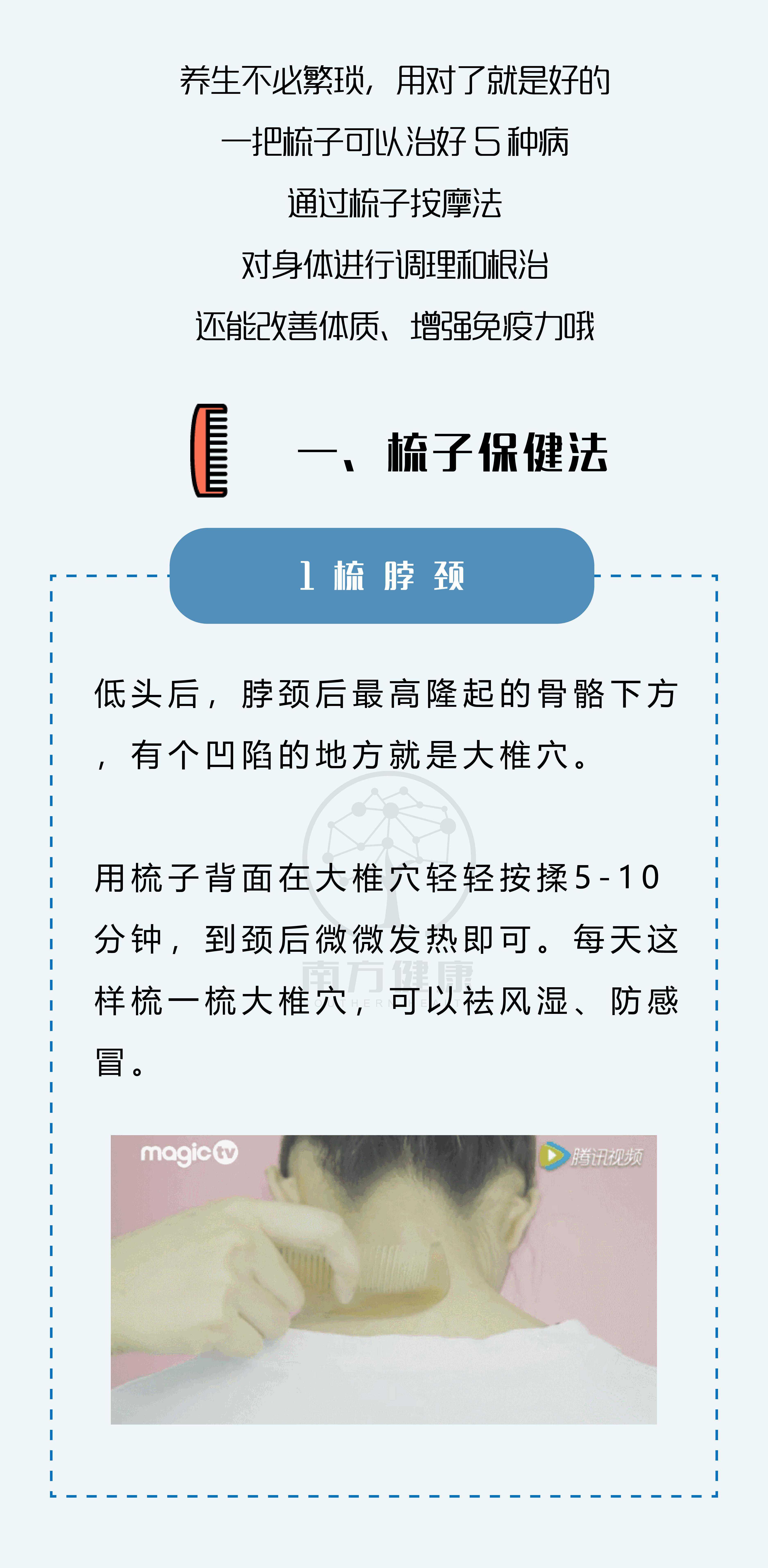 日常生活中最常用的梳子还有我们不知道的大作用,用对了可以通过梳子按摩法对身体进行调理和治疗还能改善体质、增强免疫力。