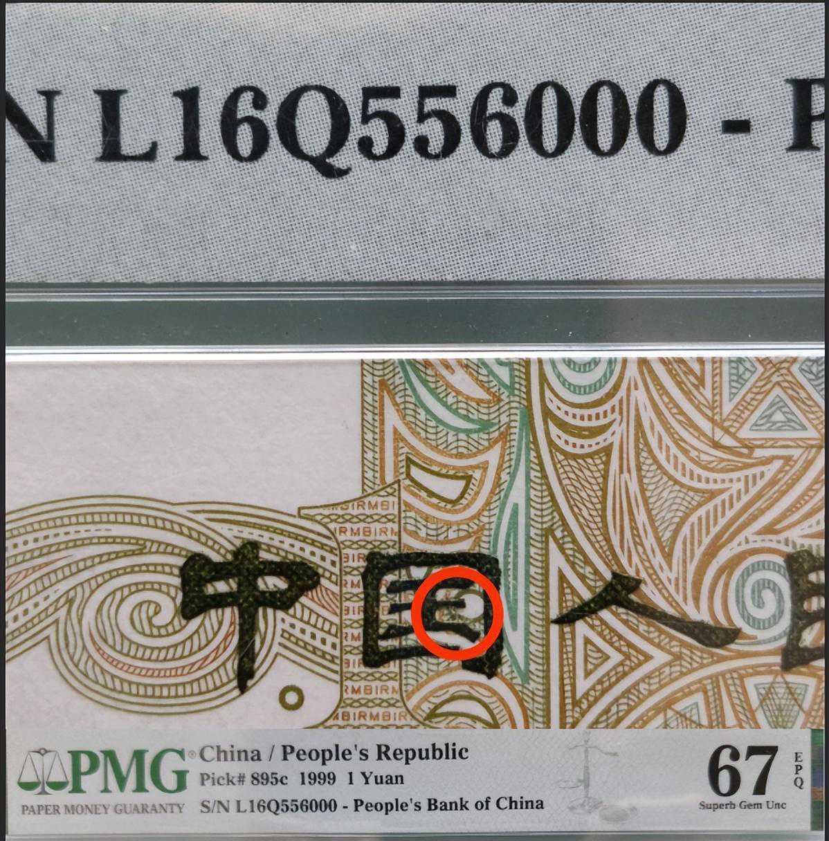 所谓的“无点国”,即991上的“中国人民银行”字样中,其中的“国”字少了一点,属于一眼清版别。