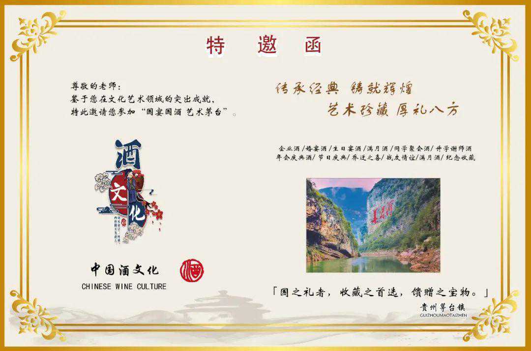 酒,作为一种特殊的文化载体,在人类交往中占有独特的地位。贵州茅台镇酱香白酒是蒸馏酒,产于中国贵州茅台镇,以本地优质高粱、小麦、水为原料。利用得天独厚的自然环境,采用科学独特的传统工艺精细酿制而成,未添加任何香气香味物质,从生产贮存经历五年以上,具有酱香突出,幽雅细腻、酒体醇厚回味悠长空杯持久的特点。“贵州茅台镇艺术酒”,是中国酱香白酒核心产区--贵州茅台镇出品。秉承传统酱香白酒的经典酿造技艺,以名家书画作品为设计元素,推出的系列产品,是中国现代白酒文化和传统文化的完美结合,具有特殊的艺术品位和收藏价值。是您宴客、品饮、收藏、礼赠之佳品,陈之于酒柜,不但保值升值,还可彰显厚重的文化艺术气息!