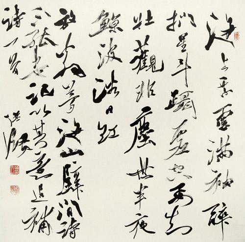 孤独是肯定的,因为理解的人太少。现在没人懂没关系,但慢慢会懂。我清楚自己在做什么,更知道目标在哪里。我一直认为点画形质是技术,点画分布是艺术。技术可以勤奋而得,但艺术是天分,是思想,是灵感,更是学养、气质、阅历等等,我选择的突破口,就在点画分布。老辣,通过生理岁数的积累都可以实现,但点画分布不行,你在书写的过程中,要尽量实现点画分布的合理性,即使把字写翻个儿了,点画也要追求合理。经历了平正,就要追求险绝。