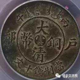 ★中心滇十文特征是正面中心“大清铜币”阴铸“滇”,两侧“户部”,上方纪年及满文,下方币值;背面部颁坐龙图案,周圈上方“光绪年造”,下方英文“大清帝国银币”。