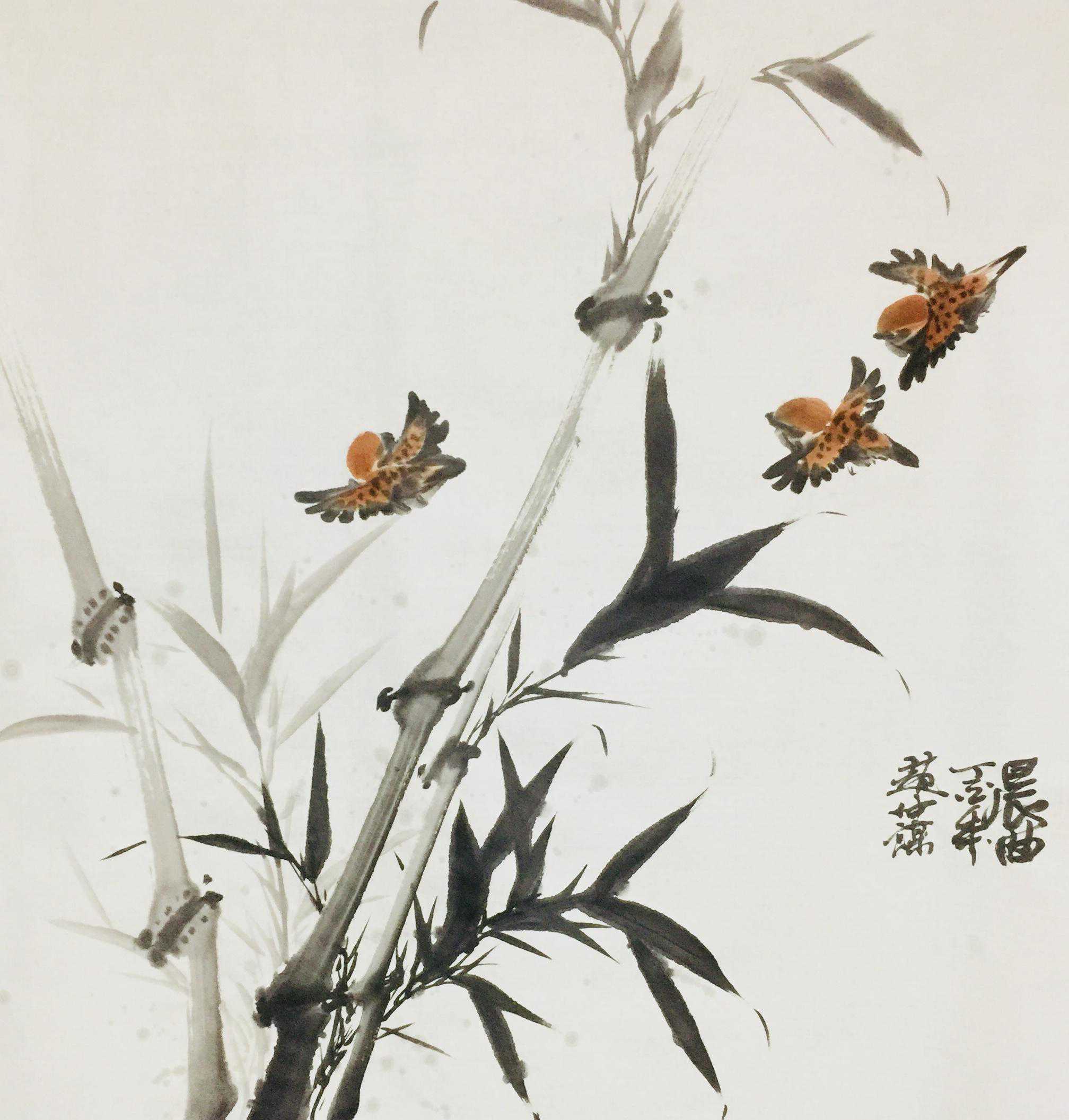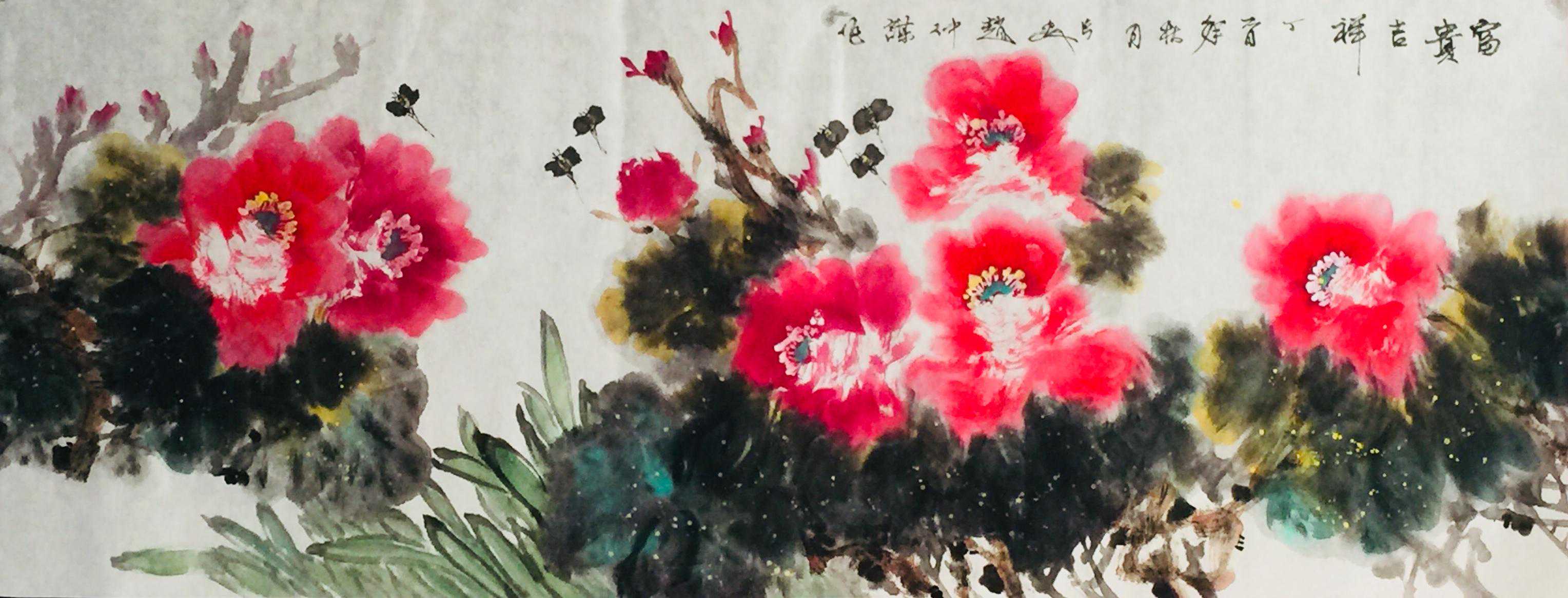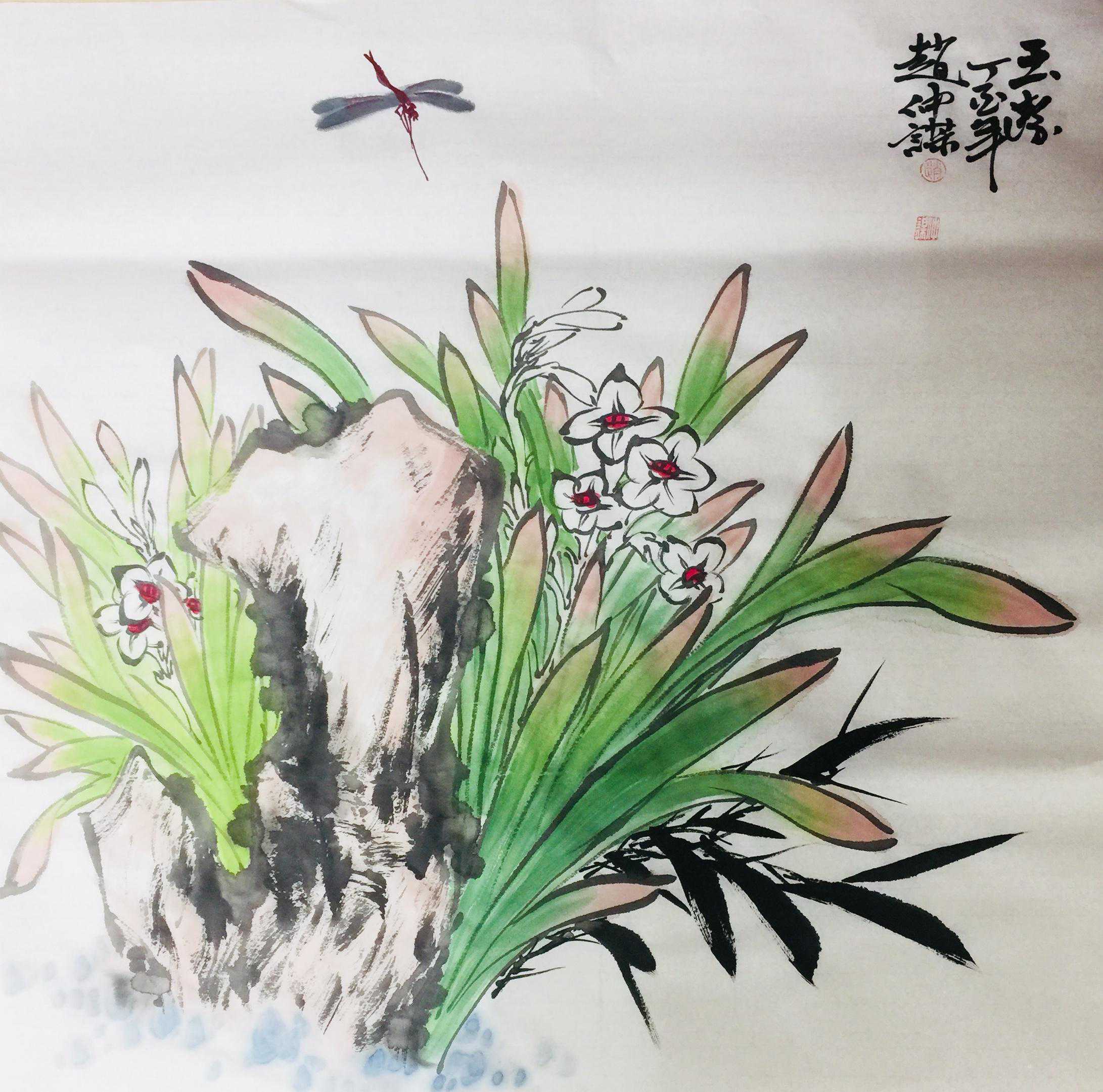 赵仲谋在写好书法艺术的同时,经过西安美院、清华大学美术学院高研班的进修,对花鸟画尤其山水画有了飞跃的进步,在他的画室看到了许多巨幅花鸟、山水创作作品。因在长期的探索与写生和进修的理论指导下,逐渐找到了一种属于自己的绘画语言,这种语言是新颖的,是建立在大写意与工笔花鸟上寓于表现力的,是通过艺术的整合提炼而成的。他将典雅与自然、飘逸与沉稳、简洁与繁杂、严谨与率意十分巧妙地融合于一体,在意与象、形与神、色与墨、收与放、紧与松等意境之间化增与减的调试,以求达到最佳的画面效果。所以,赵仲谋的作品具有双重审美特征,既有西方绘画重视光、影、色的一面,又有东方绘画突出意、情、神、趣的一面。或者说作品的形式更趋近于西方,但其神韵则是东方式的。赵仲谋花鸟画的更大突破,正在于一改纤巧之风,大胆立意、浓墨重彩,将浓重绵密的山水用墨实践和浑厚结实的汉唐造型技巧,进行了成功移植和运用,赋予了花鸟、山水画一种灿烂拙朴的英雄主义色彩,又不乏亲切灵动的生动情趣,令人一睹为快,为之震撼。赵仲谋的作品具有现代潜质的绘画色彩,那是他在首都清华美院高级研修班修成正果的再现,也是从理论到实践,在绘画作品中颇有现代审美意趣的线、色、墨、水的有机融合,是具有抽象精神的民间美术样式,那些饱满充盈、富有张力的画面,都暗含着他对现代人文精神的理解,在现代审美意境的转换上赵仲谋无疑有更高的代表性。