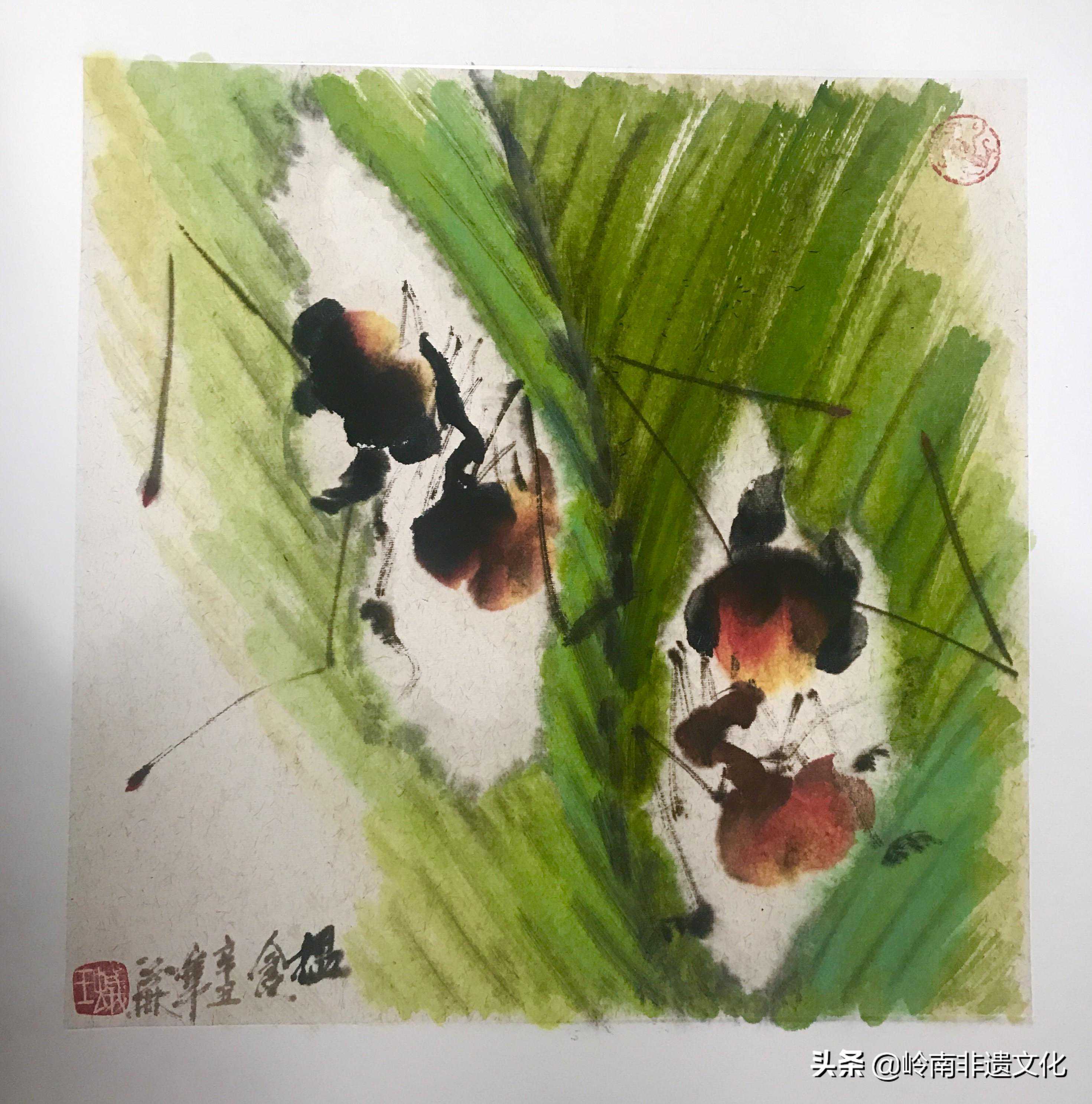 潘汾淋的“心手合一”。潘汾淋在他国画创作的题材方面,和他的陶艺作品一样,主要是昆虫和瓜果。如果说他的陶艺作品是写实的,那么他的国画作品就是写意的。