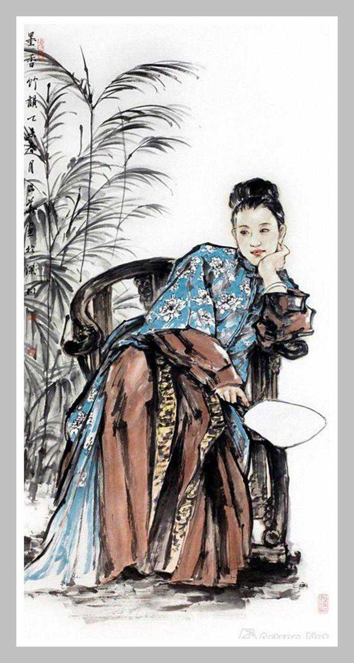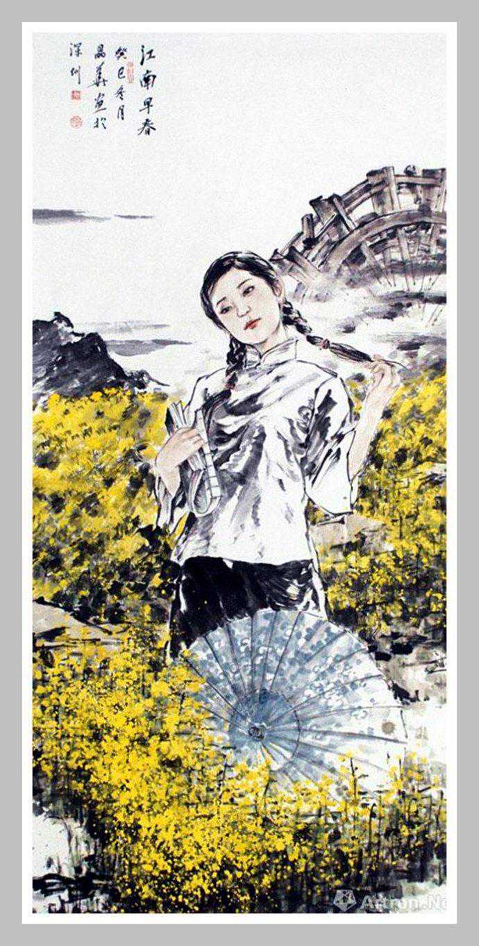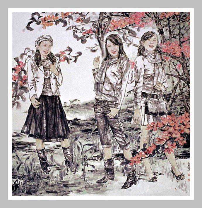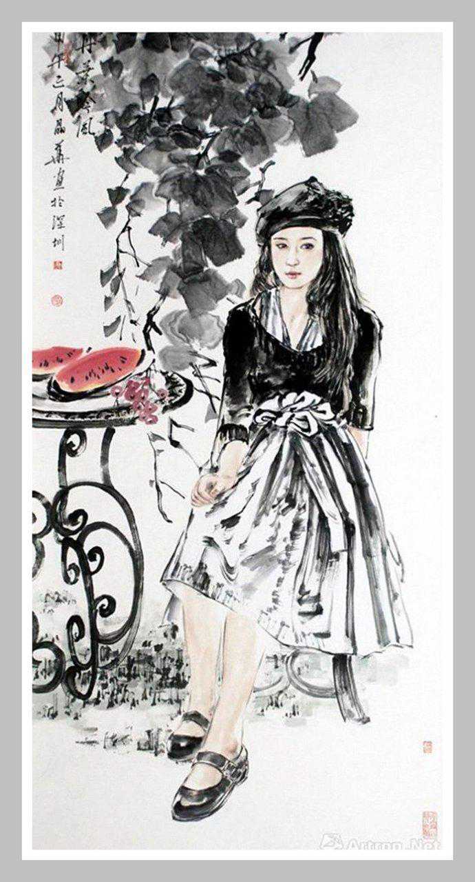 尹晶华是一位被中国艺术界及海内外收藏界看好的中国当代人物画家,九十年代初居于岭南深圳。他的水墨人物画最大亮点就是紧扣时代脉搏,人物多是表现都市时代女性,造型精准、动态轻盈、线条劲健、水墨淋漓,画风灵动自然,人物勾勒流畅,充溢着生命的张力。特别是他笔下的青年女性形象,构图独特、娴熟技巧,以长、短、粗、细之线条,浓、淡、枯、湿之笔墨,结合南国都市建筑及植被背景,以淋漓尽致之手法深刻表现,笔墨畅达、意境深远,富有一种健康充沛的生命力。