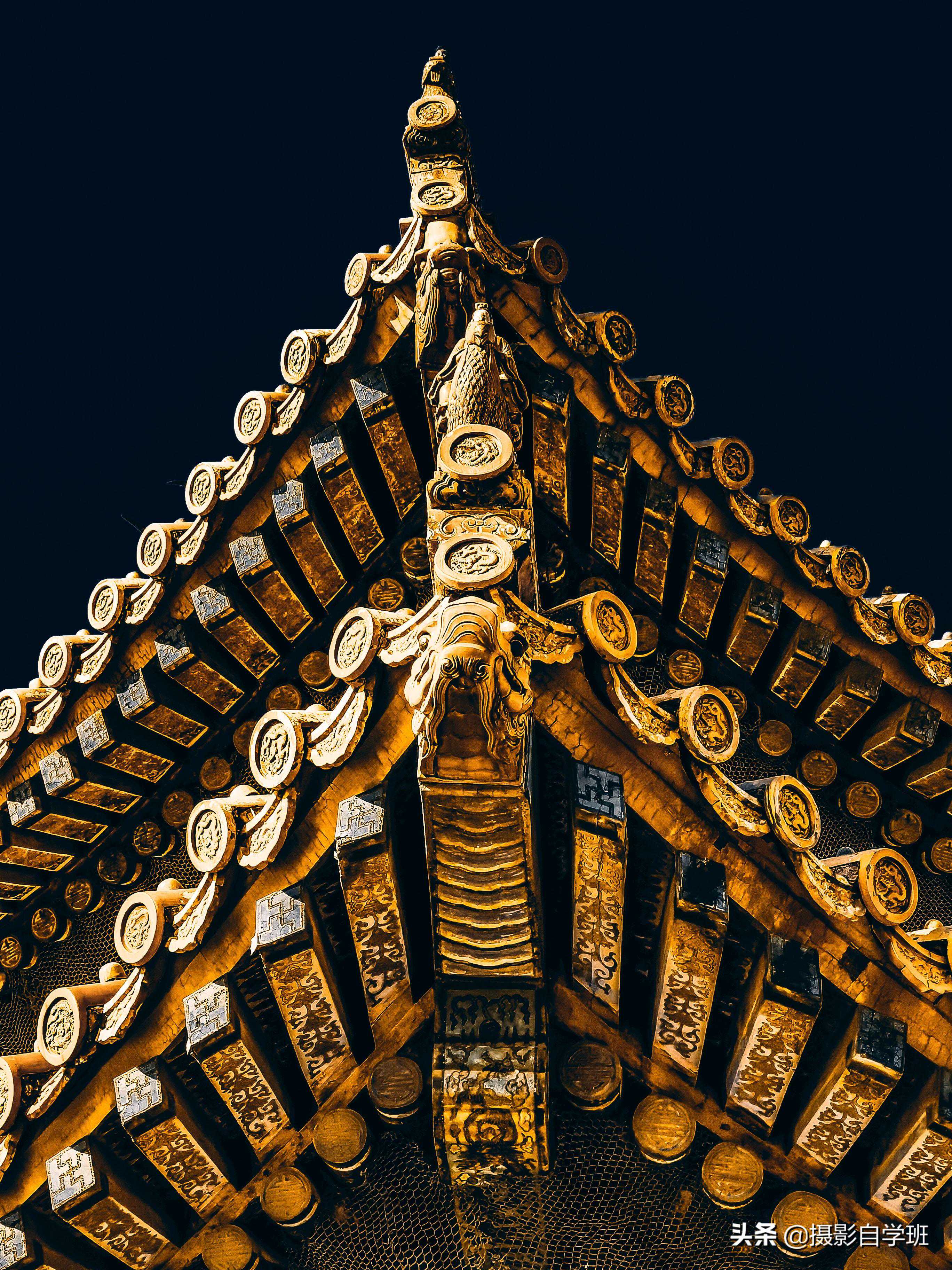 (2)还可以使用三角形构图,只拍摄房檐的一角,表现出房檐的细节。