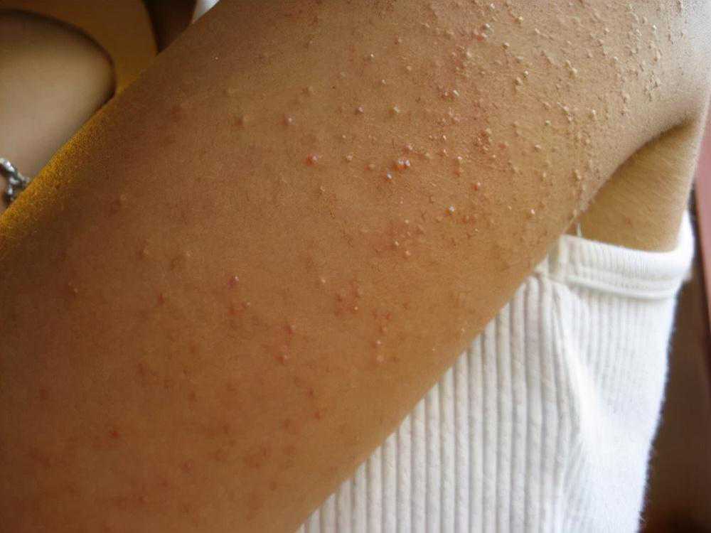 1毛囊角化症:遗传病;好发于头面部、颈部、胸背部等皮脂分泌旺盛的地方;皮损主要为散在的丘疹,丘疹上有油腻的结痂,还有轻度的瘙痒,严重时会泛发全身。