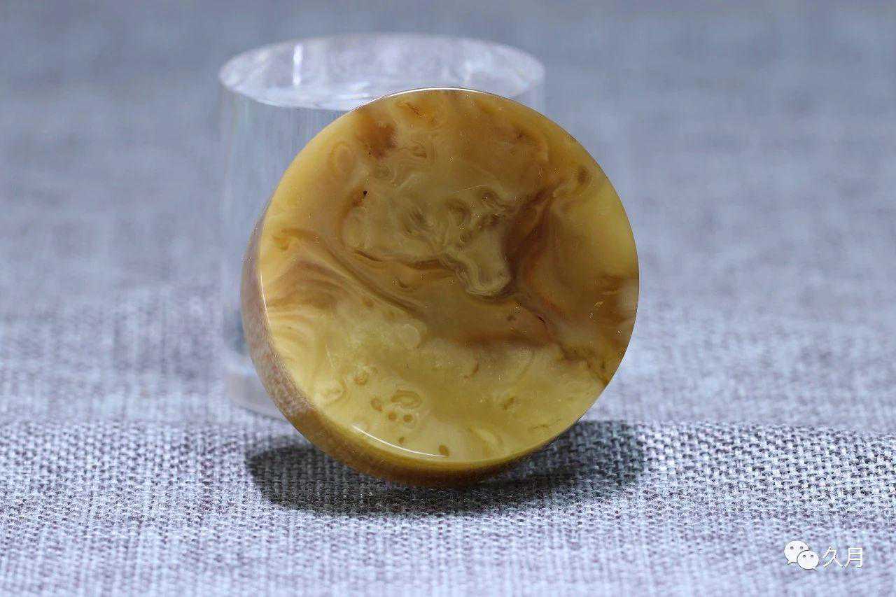 缅甸蜜蜡,色彩和纹理都非常有特色,但是有很多蜜蜡色彩和根珀接近,所以有的人不太分得清。蜜蜡纹理的形成大多是气泡,所以蜜蜡在强光下是透光的,满蜜也是能透光的。