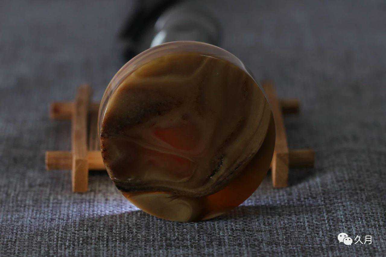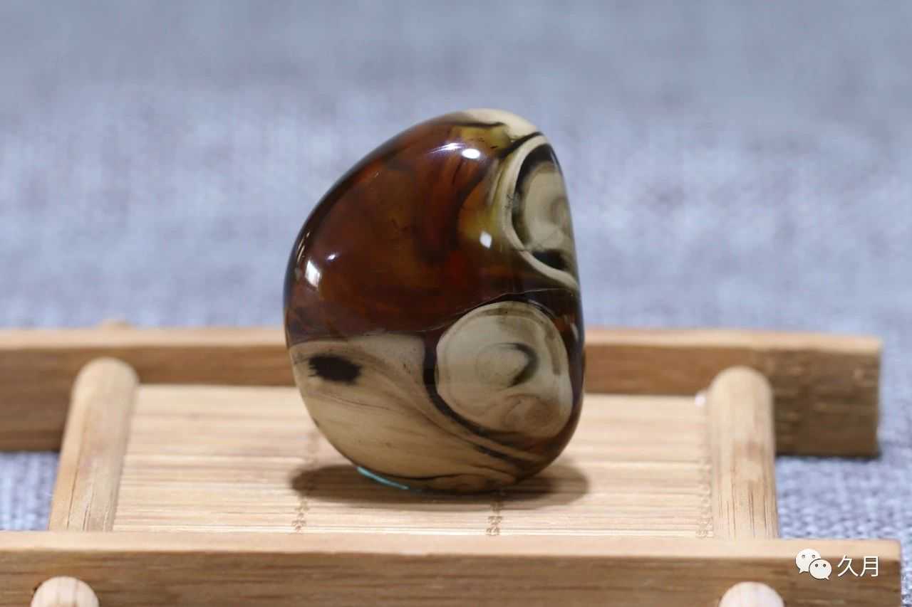 说到根珀,我们再来提一下根珀的特点,根珀之所以有非常独特的纹理,主要是因为根珀里共生了大量方解石,所以如果一个纯根珀,由于方解石的不透明的特性,导致全根珀也是不透明的,因此这就给我们提供了一个区分的依据,我们可以从透明度来区别一下根珀和蜜蜡。