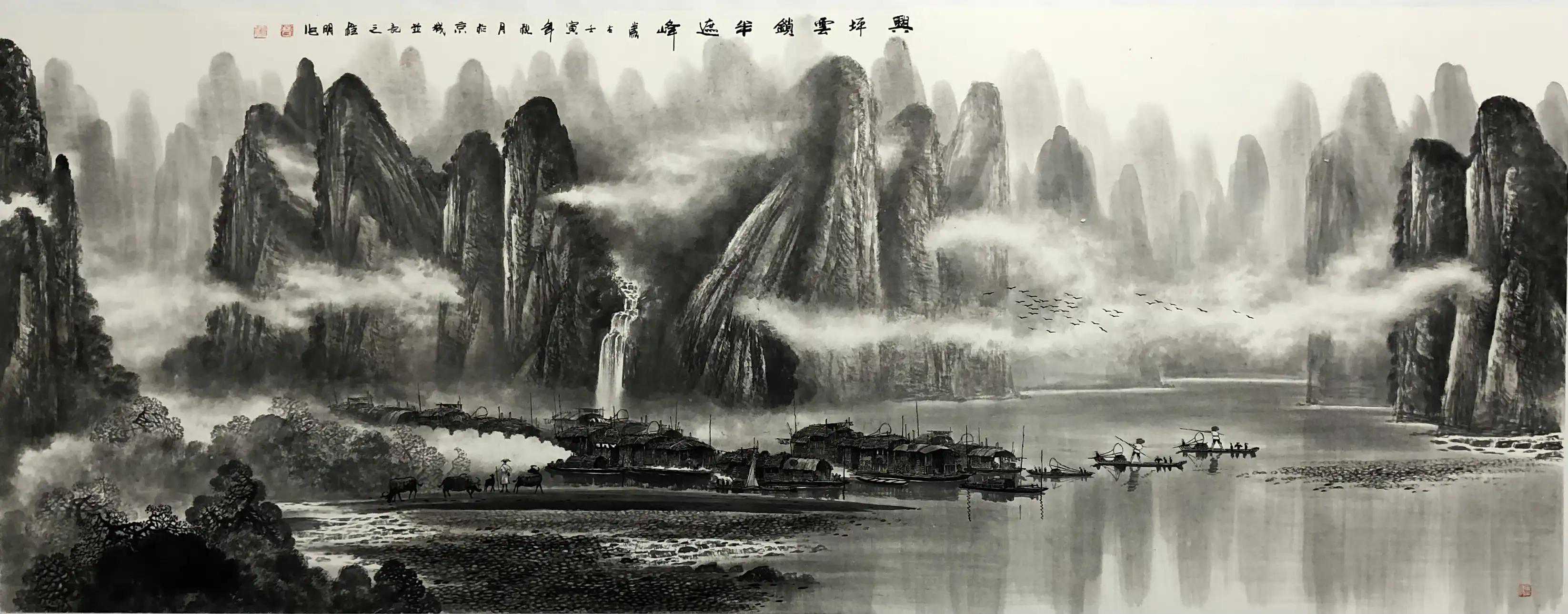 年少时习画,得陶一清,白雪石,阳太阳,黄独峰,张凭,林曦明的教导,博众家之所长,这笔,他拿起时,就没有打算再放下,现已70多岁的年纪,这一画就是久久为功,久久不能搁笔。他之于过往漓江的情融入了漓江的景,一并写入了画里,如果记忆有颜色,那一定是时间洗涤过后,退了色的纯水墨。