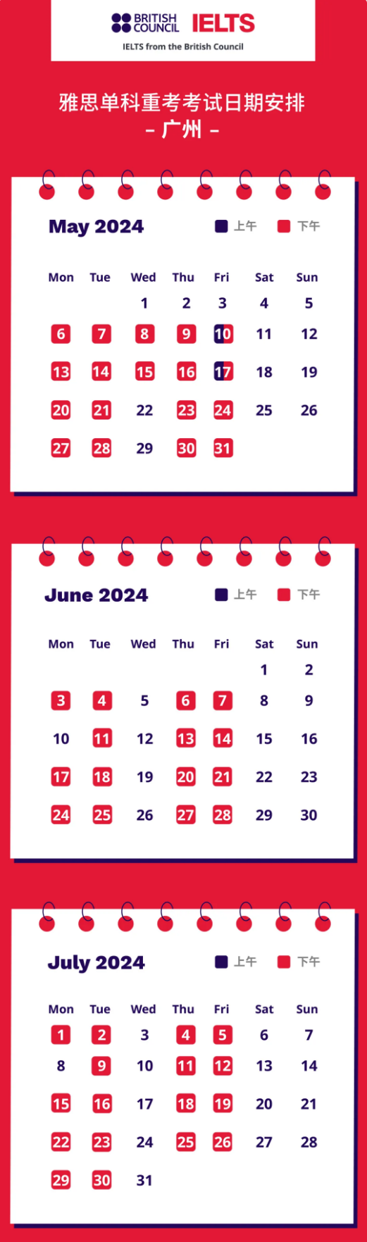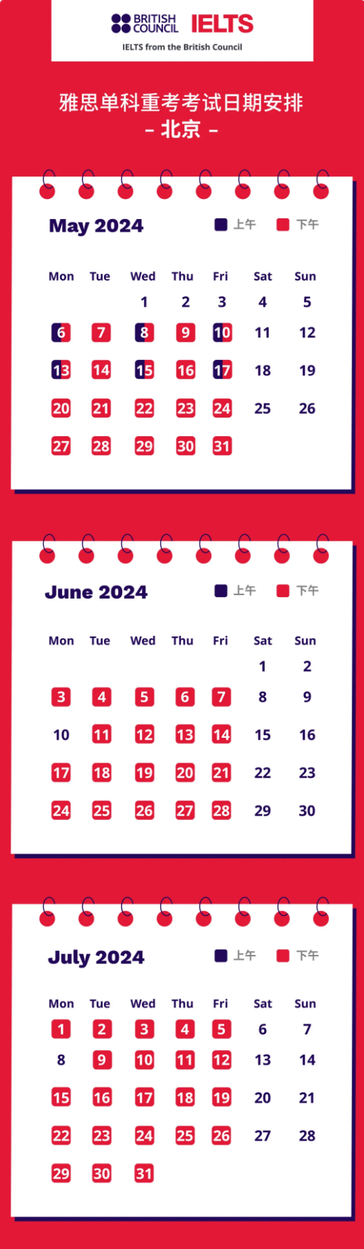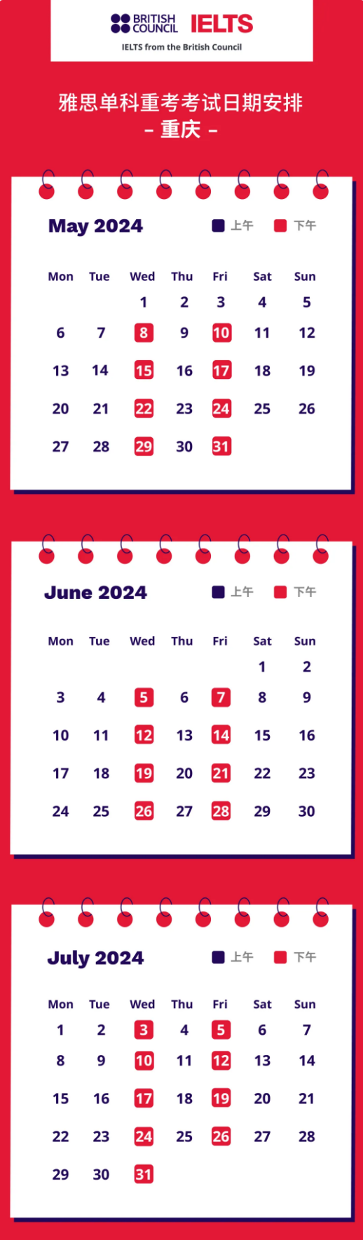 雅思单科重考5-7月考试日期