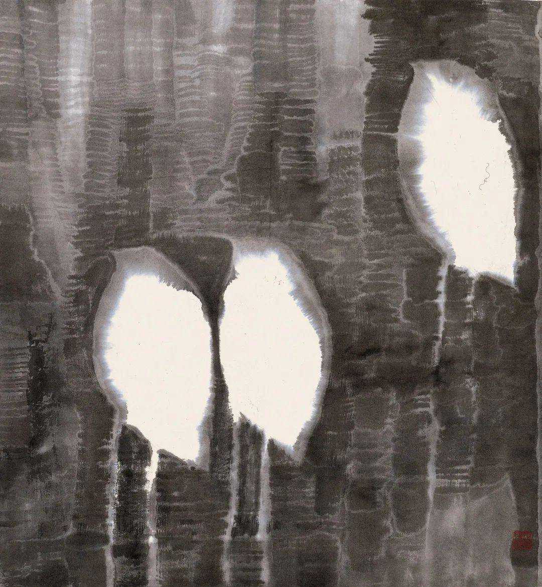 正因为将人与外在自然看作一体而非二元,两千多年前老子“知白守黑”的哲学便成为中国绘画的基本观念,黑白已然不是简单的颜色,而是虚空与实体的互动,如道家太极图阴阳鱼图案,黑白、虚实相生相应,互相对比,互相塑造!黄宾虹先生“以白计黑”的美学法则,也是对这一理念的拓展诠释。