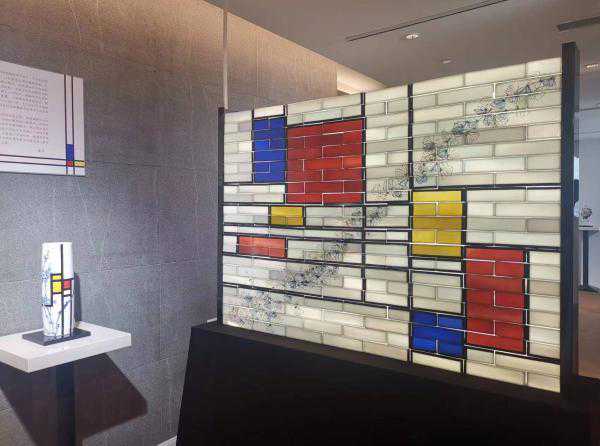 关兰瓷彩鉴赏馆现场作品“青花遇见蒙德里安”系列