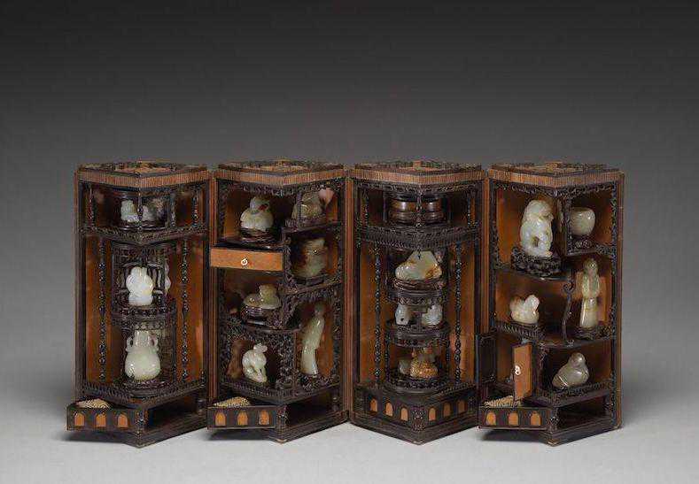 澎湃新闻获悉,台北故宫博物院新展“多宝格的收、纳、藏”3月25日开幕。“多宝格”是台北故宫博物院最有趣的藏品,有趣之处在于多宝格以各种形态呈现,有把材质不同的小古玩装满于箱匣,或将各类古物收贮于占满整墙的装饰大格。多宝格除了材质丰富外,更重要的是对于空间的利用,兼具装饰与赏玩,巧妙运用收、纳、藏的有趣变化,呈现丰富收藏所带来的观赏体验。