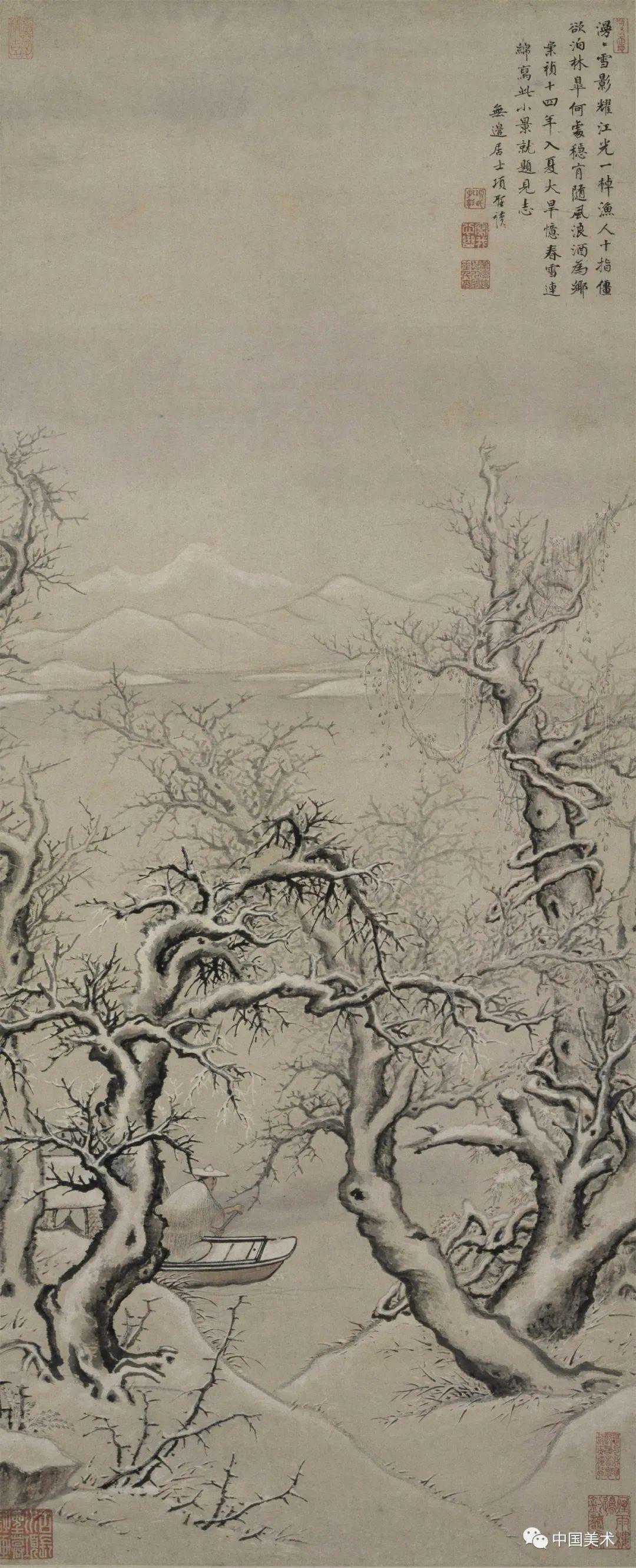在中国绘画史上,明代画风迭变,画派繁兴。在绘画的门类、题材方面,传统的人物画、山水画、花鸟画盛行,文人墨戏画的梅、兰、竹及杂画等也相当发达。在艺术流派方面,涌现出众多以地区为中心、或以风格相区别的绘画派系。在师承方面,主要有师承南宋院体风格的宫廷绘画和浙派,以及发展文人画传统的吴门派和松江派、苏松派等两大派系。在画法方面,水墨山水和写意花鸟勃兴,成就显著,人物画也出现了变形人物、墨骨敷彩肖像等独特的新面貌。在这隆冬时节,就让我们来欣赏一下明代绘画中的冬日吧。