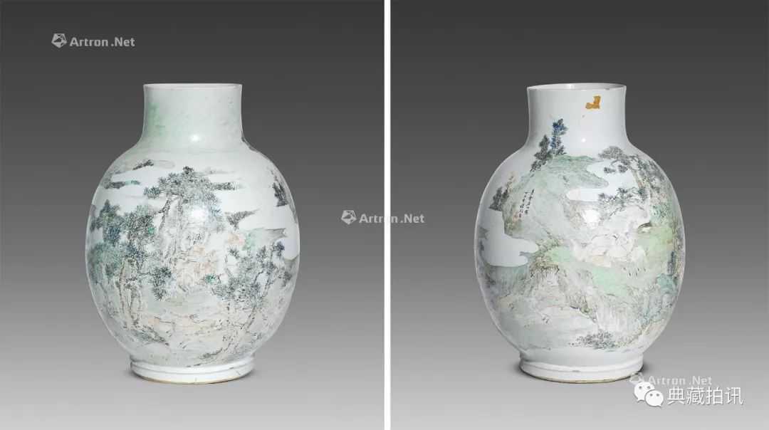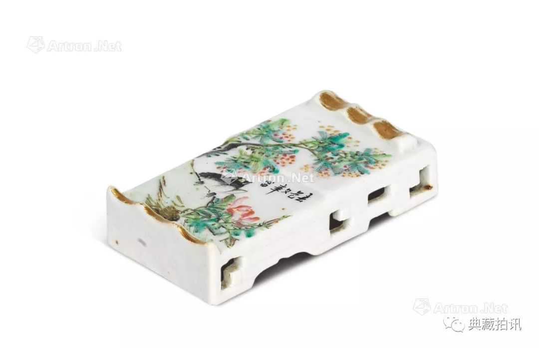 说明:程门,清末画瓷名家,又名增培,字松生,一号雪笠。画技于咸丰、同治时名噪大江南北。现今传世程门作品多以浅绛彩瓷为主,是公认的浅绛彩第一大家,他运用中国画浅绛彩的绘画技法在瓷器上创作,加上诗句、题款、纪年,开创了文人绘浅绛彩瓷器的先河。此件作品正是程门技法的经典体现:以浅绛彩仿五代画家董源的笔法,在大块的瓷板上完整描绘出一幅南派山水的秀丽俊雅,配以清丽的题字压款,让观者有身临其境之感。瓷板上款“定占仁兄词丈大人”,所说的乃是定占黄衍之,黄氏家谱内《黄公定占传并赞》中,详细记载了黄定占的生平,根据家谱记载,黄定占生于嘉庆丁丑年(1817)十一月十一日辰时,殁于光绪壬午年(1882)十一月初八日酉时,享年六十五岁。同治三年(1864)冬天,受九江关监督蔡锦青之聘,以同知衔赴景德镇管理窑务,且一呆就是十九年,阅景德镇安静一律,一直到光绪八年去世。同光时期,九江关监督兼御窑厂督陶官常驻距景德镇三百里之远的九江,对窑务只能遥领。从黄定占同知衔的身份和历任道宪都倚重他、阖镇尝以“静镇”二字称颂的情形看,他很可能就是景德镇御窑厂的实际掌管者。据中国历史第一档案馆《宫中朱批奏折》中辑录的一则奏折显示:王风池于同治十三年(1874年)八月,尊例报捐知府分发江西试用,同时《阳新县志》记载1877年王任南康知府。那么王风池在任南康知府之前具体做什么则语焉不详。从这篇传记看,王风池在1876年赴景镇权榷务,也就是负责景德镇的税务工作,得以和黄定占“昕夕过从”,早晚相伴。黄氏家谱记载黄定占为南康知府,这一点恐有误。从王风池的传记看,黄定占在景德镇工作十九年,从未离开过御窑厂。同治十三年的《九江府志》记载和王风池所记基本一致:邑庠,城工保举候选县丞。捐授布理问加同知衔。所以,家谱记载黄定占为南康知府很可能是误把王风池的官职记到了黄定占头上。按照清朝官製,布理问加同知衔为正五品官员,这在当时的景德镇已经是级别很高的官员了,和饶州府驻景德镇同知、以及比其他地方知县高两级的五品浮梁知县级别相同。由此我们可以判定,黄定占就是御窑厂负责具体事务的最高官员。黄定占的名字,多次出现在程门、金品卿等人的作品上,特别是落有环翠亭与官廨款之器物皆为当时御窑厂官窑胎器所作。全国目前发现浅绛彩瓷中落有这两款的器物就十几件,也基本都为金品卿与王少维作品,可见其的弥足珍贵。黄定占执掌御窑厂的十九年,正是浅绛彩瓷画这一在中国陶瓷绘画史上最具文人气息的品种兴起和繁盛时期。他和王风池、唐基桐等文人官员、程门、金品卿、王少维等新安派画家一起,在"同光中兴”的大背景下,适应时代的文化需求,共同催生了浅绛彩瓷画的横空出世,成功实现了瓷本绘画向传统纸绢画的逆袭,为百年来景德镇陶瓷绘画艺术的繁荣奠定了坚实的基础。翰林院编修出身的王风池在赞文中以“浔江之水,庐山之云”形容他的功绩,毫不为过。