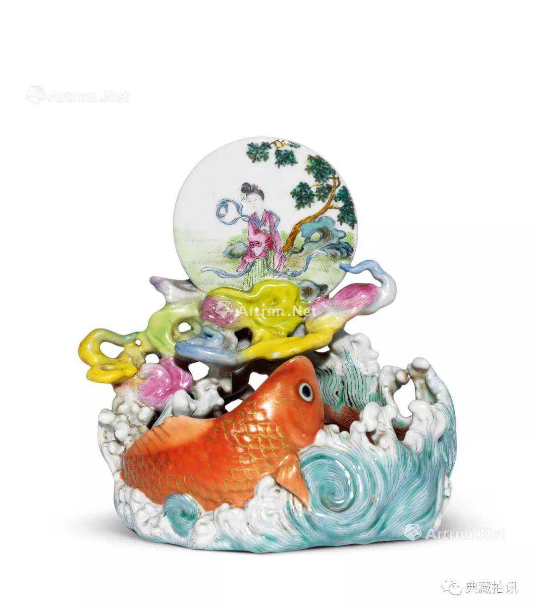 1307民国粉彩鲤鱼笔洗