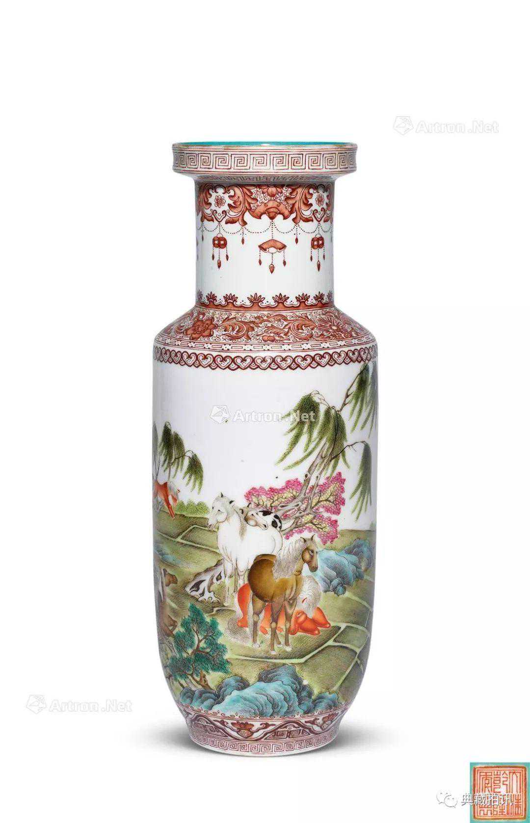 1315民国粉彩八骏图棒槌瓶