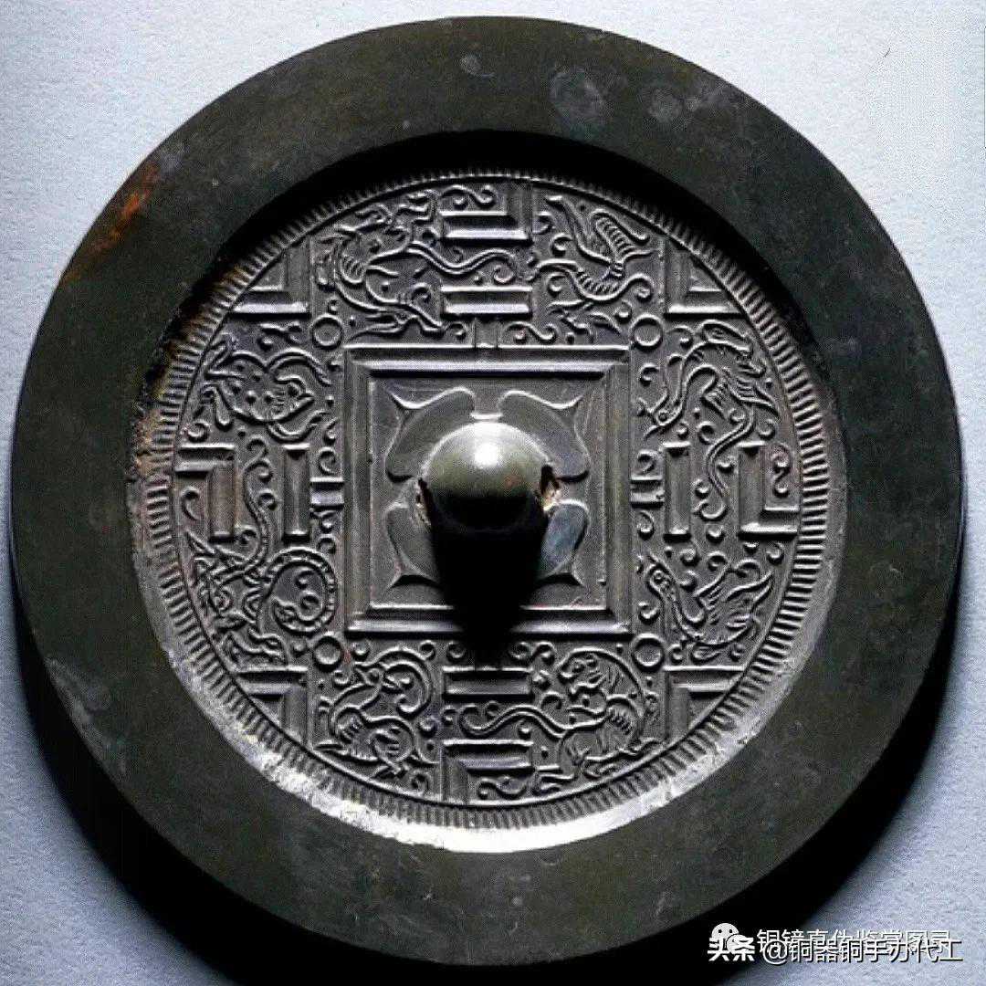 镜版工光气一流,云雷纹地甚为精细,有冲。纹饰以宽线条展示,线刻辅助表现。三龙纹饰,龙首巨大,怒目长角,身形蟠绕,趾爪锋利。充分展现了中华龙图腾的神秘与狞厉。