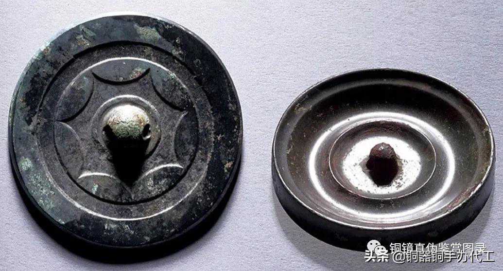 镜一组两枚,七联弧纹少见,弦纹镜器形小巧精致,镜保存完好,品相佳。