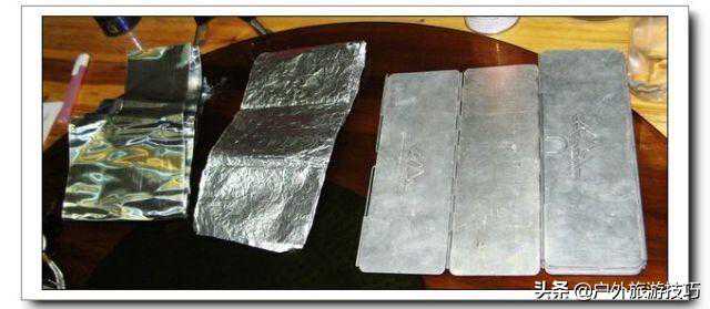 炉具最好配合挡风板来使用更好。炉头配背挡风板,既挡风又不浪费燃料,还可反射热能提高炉具的燃烧效能。挡风板笔者也使用过不少类型,有不锈钢板、铝板、锡泊纸,锌铁皮等制作的。不锈钢板、铝板的挡风板较常见,很多户外店有买,但相对较重且携带不便;轻薄锌铁皮的挡风板,市面上较少出售,通常配置在特定的炉具,如MSR的汽化炉,质轻,反射热量强。现在向大家推荐锡泊纸DIY制作的挡风板,到超市购买30-40cm宽度烧烤用的锡泊纸,回家重叠三至四层厚度,长度约40-50cm,再从中间叠回两半,锡泊纸DIY制作的挡风板就完成了。这样的挡风板,收叠携带方便,经济实用,重量可以忽略不计,一样可以挡风并反射热量。在野外环境,必要时刻还可以用来包裹生鲜食物放火里烧烤熟食,非常符合户外装备的经济、轻量、一物多用的人性化原则。