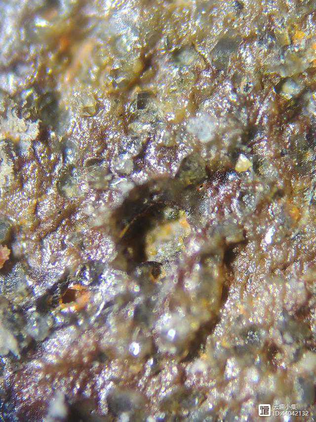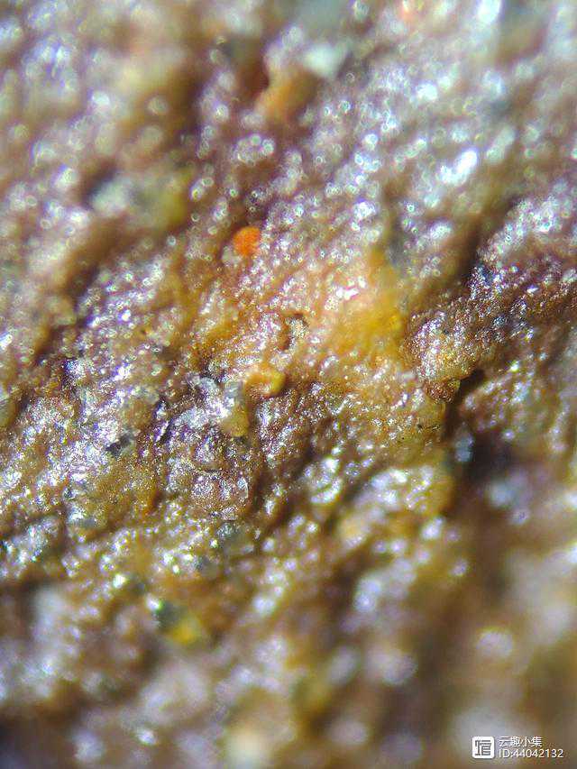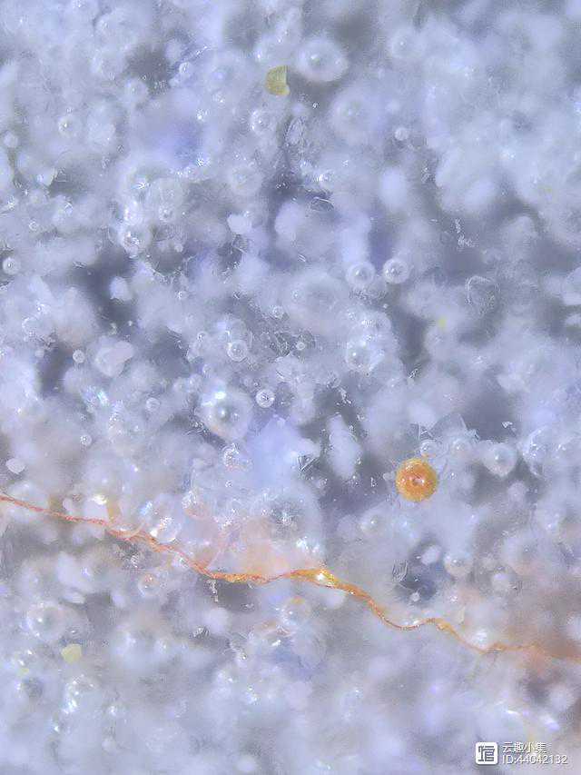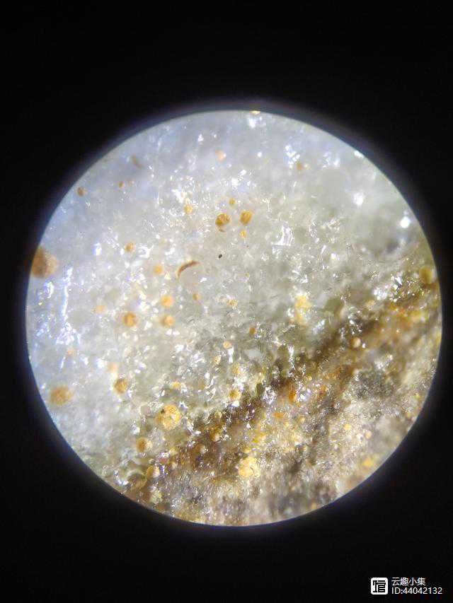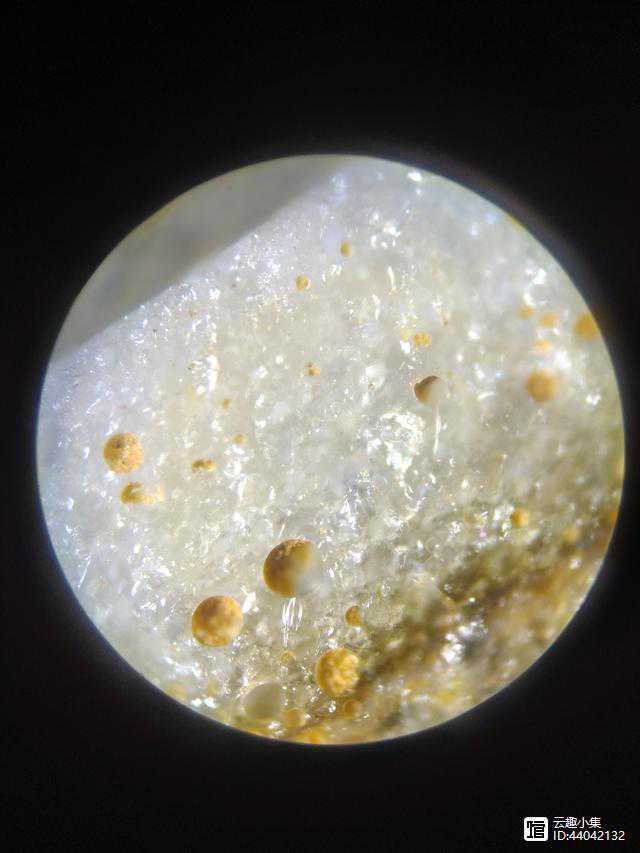 6、用显微镜观察底足,可见有大小不一的石英砂颗粒。