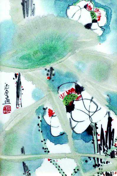 宁钢的作品既汲取了传统瓷绘艺术的造型元素,又融入了现代艺术的表现手法;既彰显了瓷质的恬静、温润之美,又充分发挥了其丰富的色彩表现能力。艺术家在创作中利用高温色釉富于变化的特点,力求摆脱传统瓷板画易产生的僵化、呆板之态。其作品构图疏而不空、满而不溢,画面风格或宁静淡雅,或富丽明艳。
