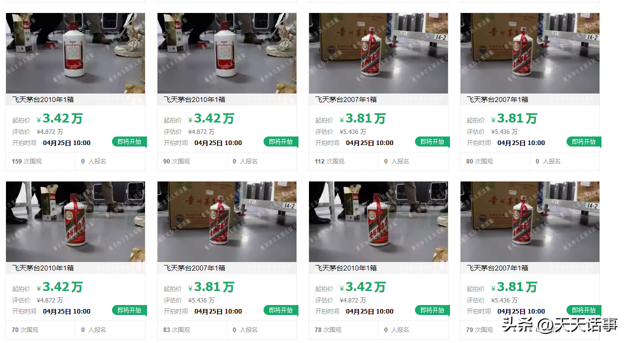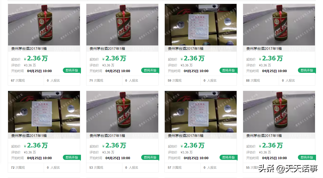 近日,重庆市的法院在阿里拍卖上新了多宗重量级拍卖,包括252瓶飞天茅台以及三幅珍贵的字画。这些拍卖都是给一个姓雷的人士有关,涉及刑事案件处理的违法所得财产,但是具体什么刑事案件,从拍卖给出的信息查询不到,不过肯定是一起大案,因为拍卖的总起拍价超过亿元。