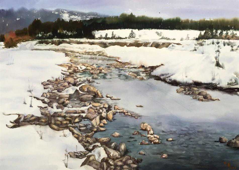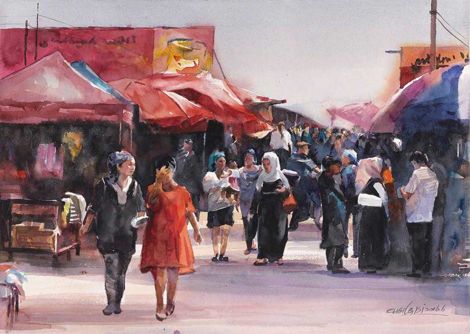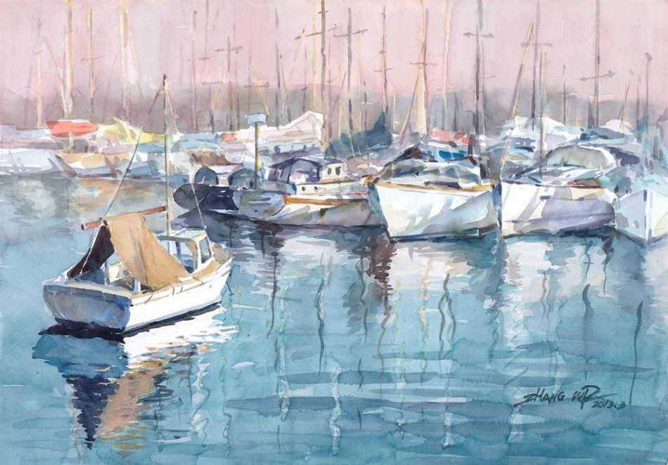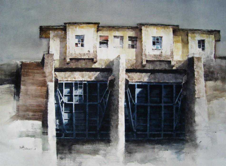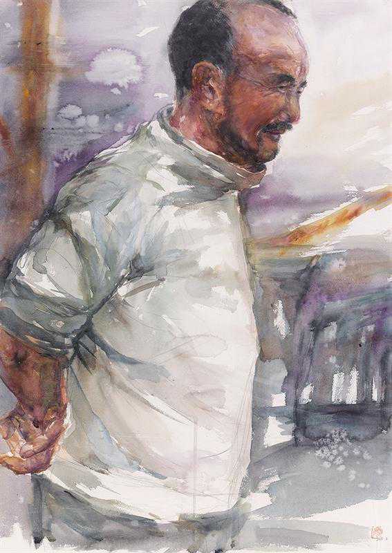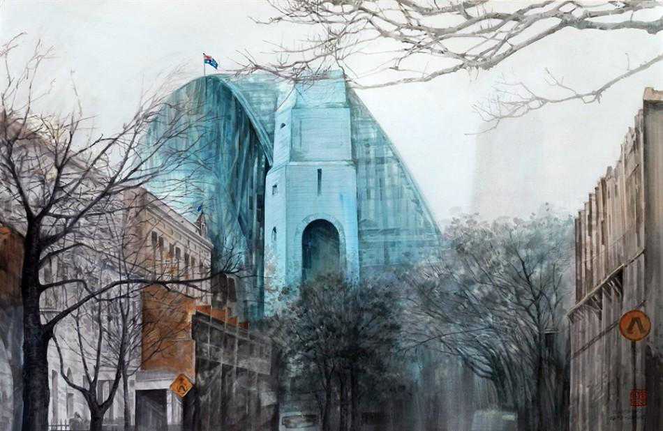 柯明泽《外滩春早系列之二》纸本水彩79X59CM
