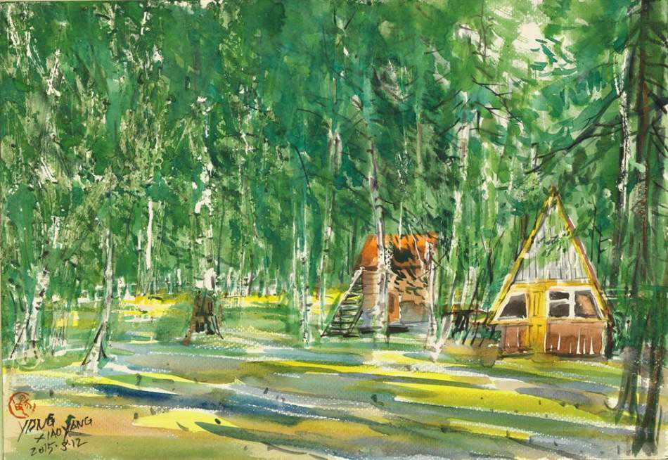 杨晓洋蒙古行系列-林间28×40cm2015年