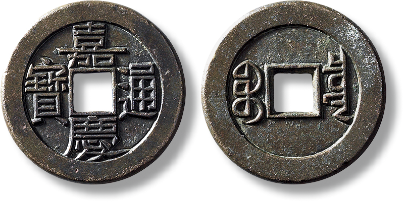 正面图案:均为北京天坛祈年殿,并刊国名、年号。