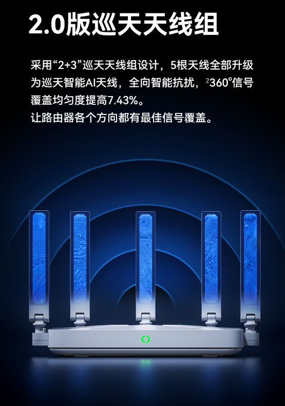 在硬件配置上,中兴巡天BE5100自研133芯片与MTK7991A的组合堪称黄金搭配,芯片带机量高达512台,即便是多个设备端连接,也能保持出色的信号传输速率。同时,中兴巡天BE5100采用2.0版巡天天线组,将5根天线升级为巡天智能AI天线,有效覆盖路由器各个方向,大大提升了覆盖范围,让用户在卫生间、阳台等信号相对较弱的地方也能够拥有高速网络连接。