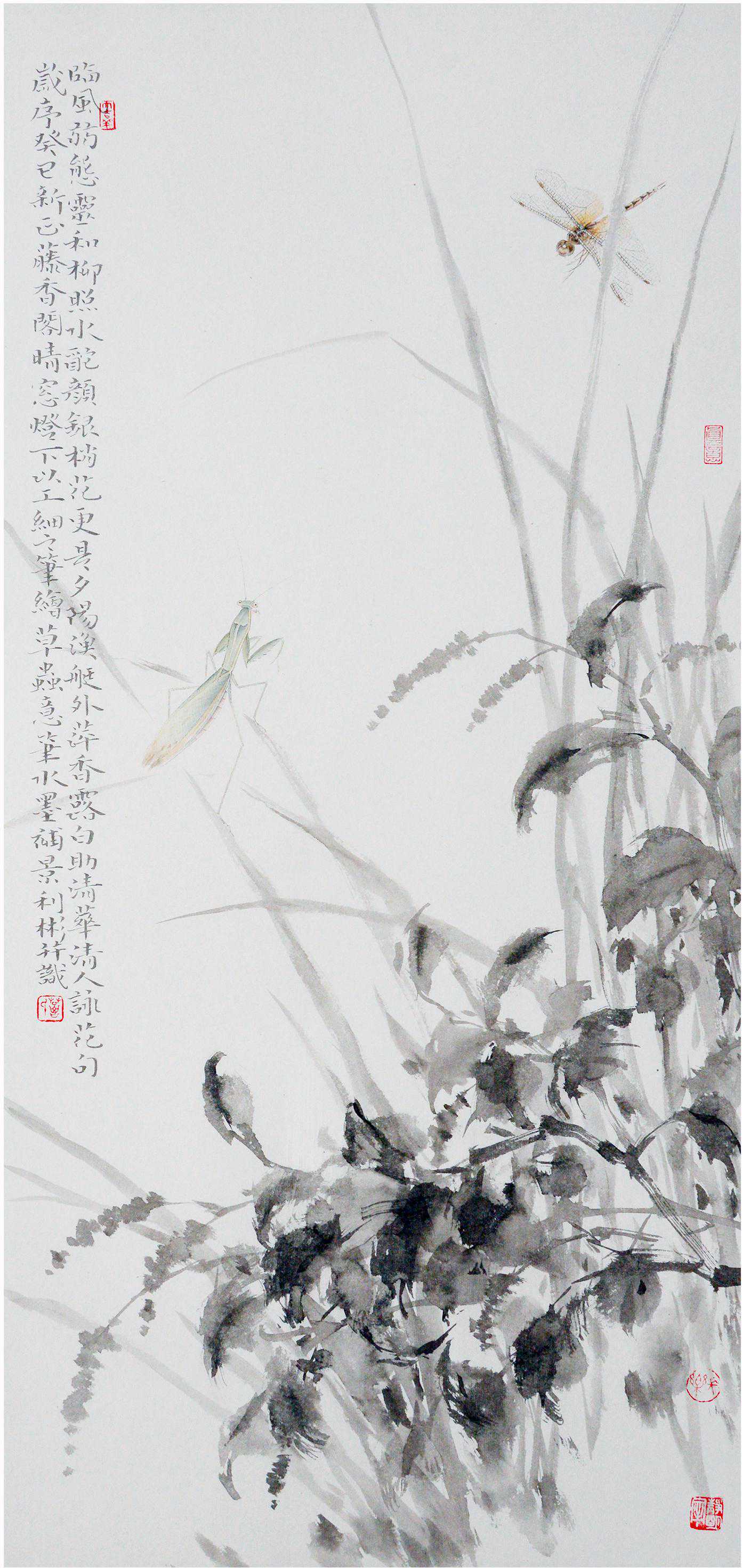 中国画重神韵、气韵。《古品画录》将气韵生动列为第一;《笔法记》归纳六要之论,其中一曰气、二曰韵;《历代名画记》同样将气韵生动作为绘画的总体要求,称其为审美的最高境界。阐释这种纯正的东方之韵的视觉影像无非是形与色。生动形象的获得所依靠的是笔墨所独有的表述语言,而这种独立的笔墨语言则依托于独立的绘画思想体系。无论是独立的思想体系,还是独立的审美语言,都离不开对现实生活的细致观察,对客观物象的取舍安排。而这一切的一切最终的目的也是为神韵、气韵而服务的。这是他们之间的本末关系。而这种关系的把握与体现,则依靠画家的功力、学养、认识、感悟来实现,同时也是画家功力、学养、认识、感悟的折射,以最终决定一件作品的成功与否,决定一个画家的成功与否。在葛利彬的作品中,无论是精致传神的鸟雀鱼虫,还是笔墨酣畅的百草千花,都可以体会出画家在“气”与“韵”、“神”与“形”上的不懈追求和精彩演绎。