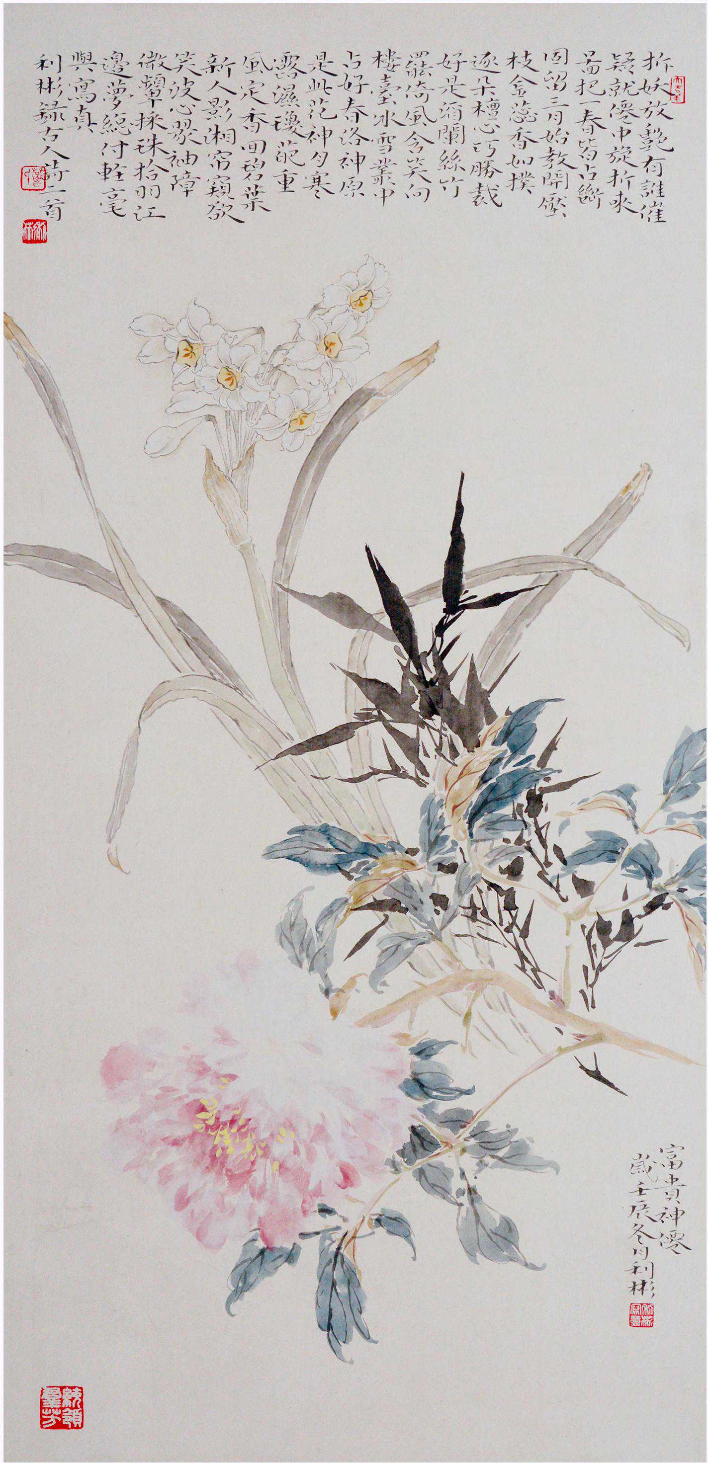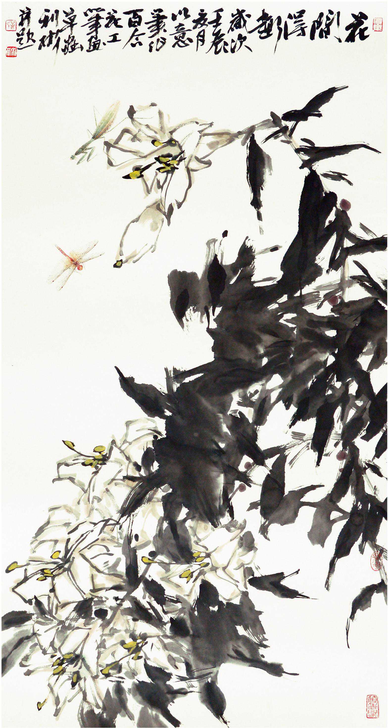 花鸟画优劣区别在形象与笔墨的结合处理,在雅与俗的分野之中。欣赏葛利彬的绘画作品,透过其丰富的绘画语言、扎实的笔墨功夫,观者犹如品读着一首首精彩的小诗。这些诗境的再现、诗意的表达或淡雅清新、或热烈奔放,人们在优美与壮美的不同旋律中,品味作者创作时的冲动与快感的同时,也为自己带来精神上的愉悦。