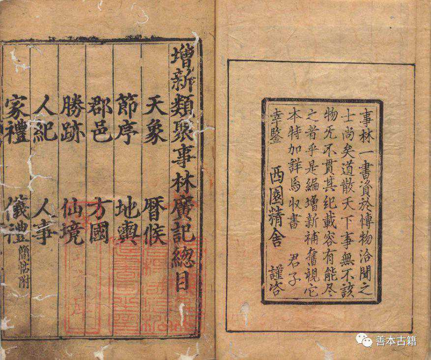 该书问世以后,在民间流传很广,自南宋末到明代初期,书坊不断翻刻。每次翻刻,又都增补一些新内容。如“历代纪年”一门,元朝的翻刻本增添了元朝初期的帝号,明初的翻刻本又延续到元朝覆亡为止。疆域和官制,也因改朝换代在各个版次中有所反映。现在能见到的《事林广记》已有六种不同的版本,其中最早的一种是元至顺年间(1330—1333)建安椿庄书院刊本,中华书局曾于1963年影印。