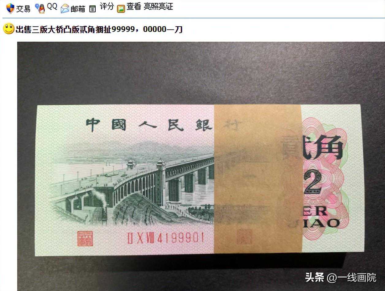 三版2角大桥纤云的市场价格在最高的时候能达到200元左右一张,后面发现的数量多了,价格也就没有那么高了。