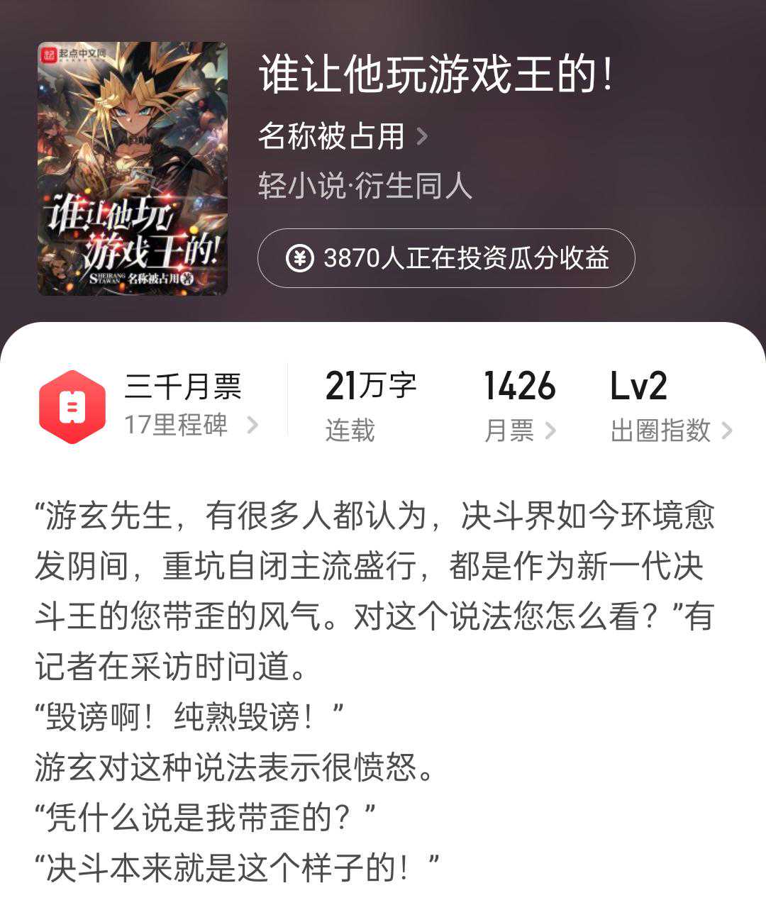 游戏王这个小众同人,真的是被他写起来了,之前就已经写过一本万订《我在决斗都市玩卡牌》,现在显然又是一本,而且成绩会更好的。