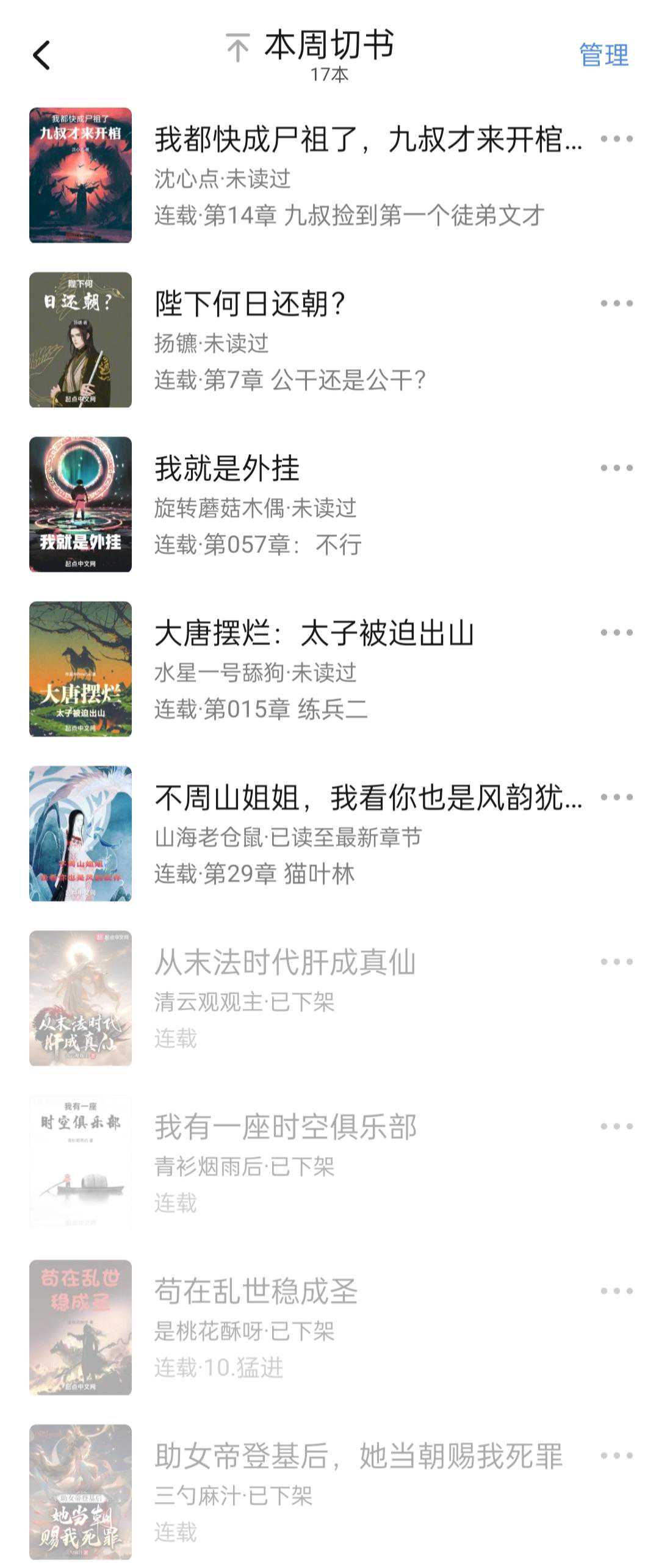 男人不潇洒大家比较熟悉了,最近切书不少,“是桃花酥呀”上本写偏了的精品小说确定太监后,新开了一本苟道文,只是这次没写多久就噶了。