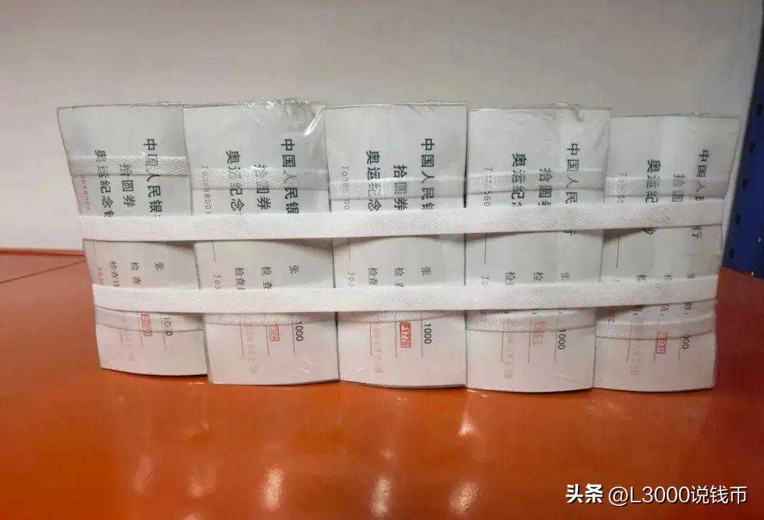 这10捆奥运钞,号段为J03650001到J03660000,是连号的!10捆就是1万张,这对实际发行不到600万的奥运钞来说,极为少见。
