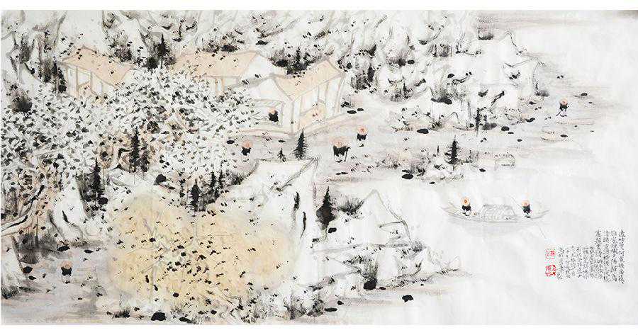 默公善于描绘古典隐士、避世逍遥,以及他们对溪山清远的追求。观他的画,语言纯粹、形式独立,人文意蕴和传统精神均突显,他又善用当代的理念和视觉来理解中国山水画,因此作品又具有时代特征。默公说,山水画不能脱离山水的基本概念,随意生发而没有底线的去画,应该说其实是没有弄懂山水画,做出来的作品也没有审美和评说价值。因为真正具有价值的山水画,并非真山真水的真实写照,而是融会贯通后的心理写实。默公的画无疑是值得向大家推荐的,他的作品证明了这点。