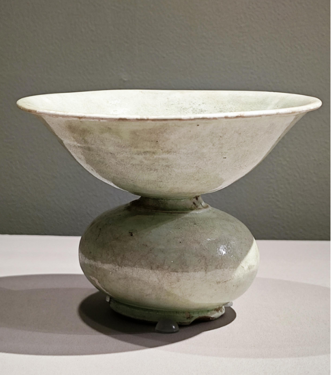 至宋代,“斗茶”之风兴起,在当今影视剧中得见。茶艺与茶具相比前朝更是讲究。茶的色香味,斗茶时的操作技巧,击拂茶汤后的呈现效果和茶沫在盏壁的存留时间,都是斗茶考评的重点。斗茶崇尚纯白茶色,因此能让白色茶墨充分呈现的黑釉盏备受人们推崇。其中,以福建建窑烧造的建盏最为著名。青釉,青白釉茶盏造型相近,也十分流行。建盏的形状口大底小,犹如一个漏斗,足够容纳翻滚而入的汤花;盏壁较厚,以维持恰到好处的温度,保证茶水可以“久热不冷”。阳光下透出的纹路如毛发细密,有兔毫斑,鹧鸪斑等不同品类。