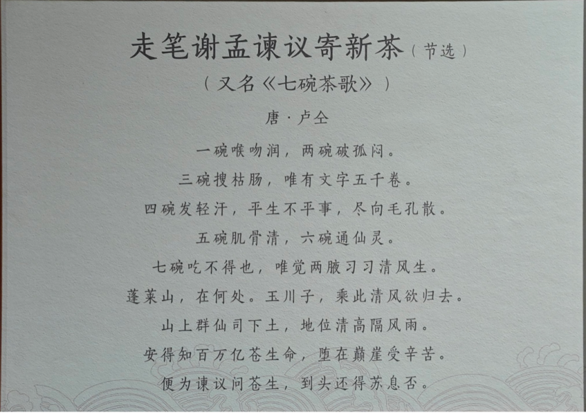 一杯清茶,让诗人润喉、除烦、泼墨挥毫,并生出羽化成仙的美境。《七碗茶歌》横空出世后,打破了初唐只重饮茶技艺的窠臼,写出了饮茶妙趣,将茶人品茗的精妙之处精确的表述了出来,将中国的茶道文化一下提升到一个空前的高度。玉川煎茶也成为经久不衰的绘画题材之一,在历代画家笔下一直有所表现,比如元代钱选、明代丁云鹏都画过玉川煎茶图。