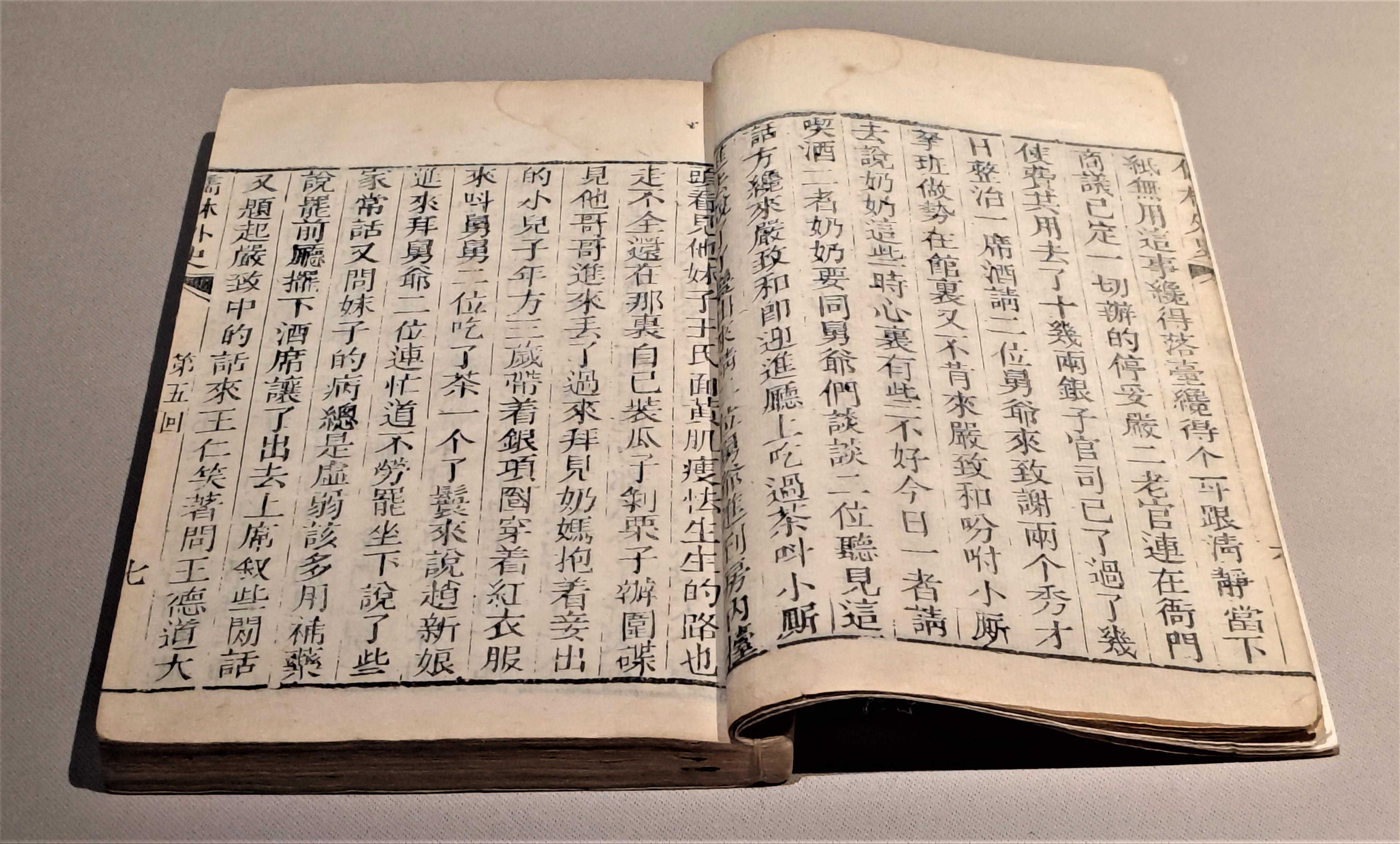 在宫廷画师为乾隆皇帝绘制的《是一是二》图中,弘历作文士打扮。端坐茶舍之内,手持书卷,目视清茶,身边放置着上古玉璧、商周青铜器、青花瓷器、善本书画等古物珍玩。