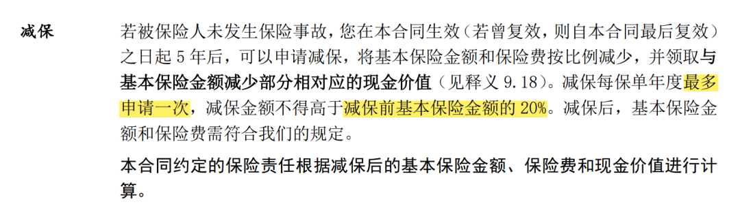 重要的是,它还是当前少见的、减保没20%限制的产品。