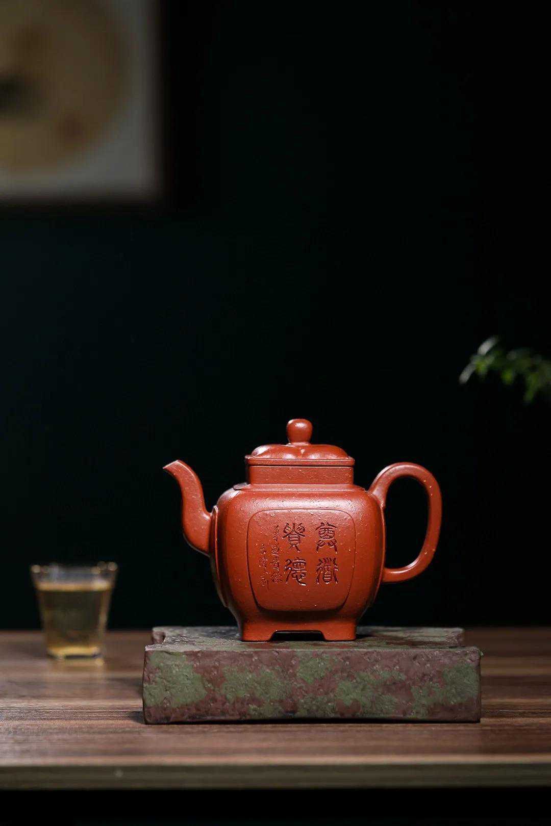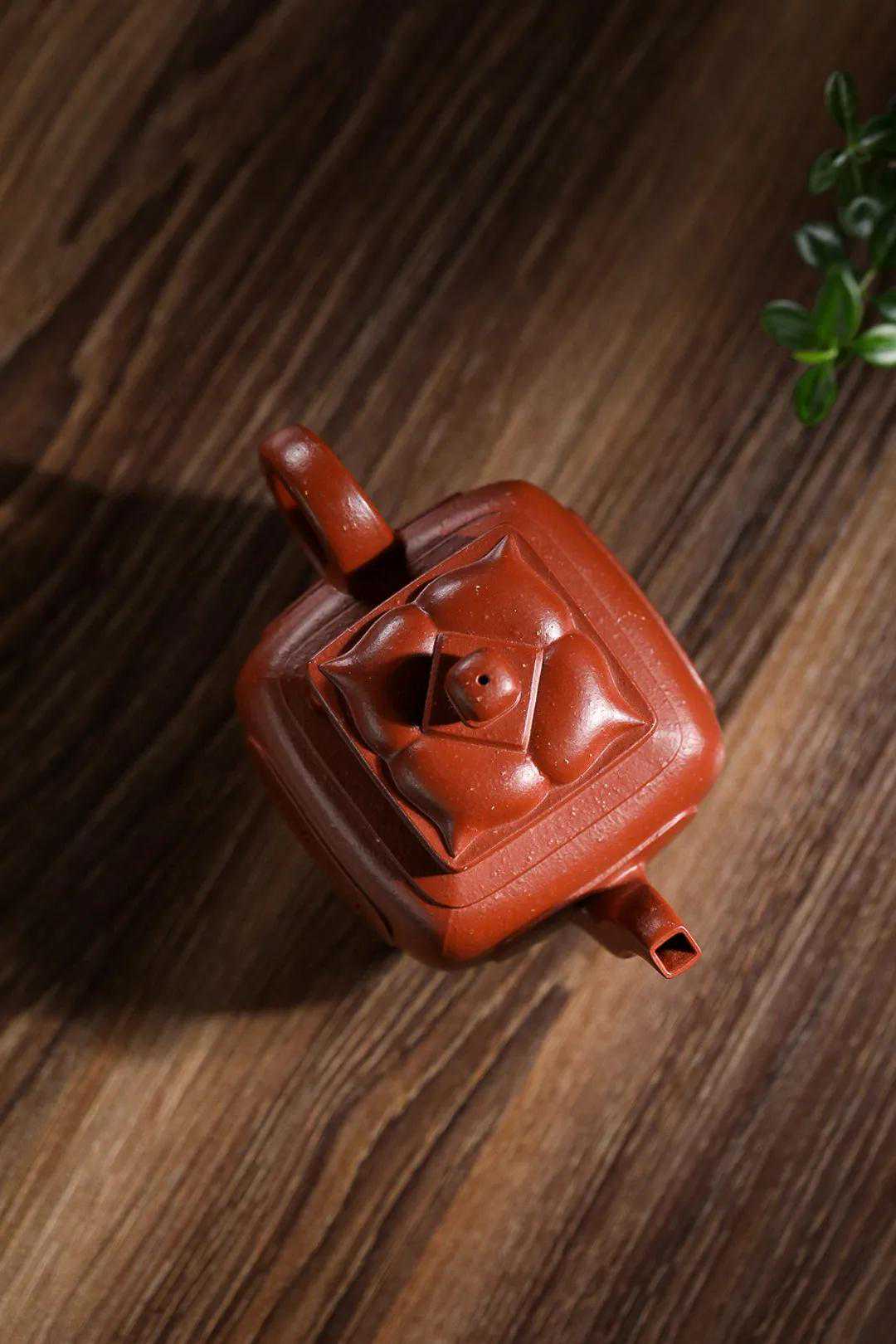 注:赤龙焕彩泥料——采用家藏大红袍朱泥底料结合极其珍贵黄金段料研磨成颗粒,请教原紫砂厂练泥车间老师傅,进行多次配比实验,烧成后黄金段颗粒自然排列有如龙之金鳞,融合的大红袍朱泥特性,故名赤龙焕彩。