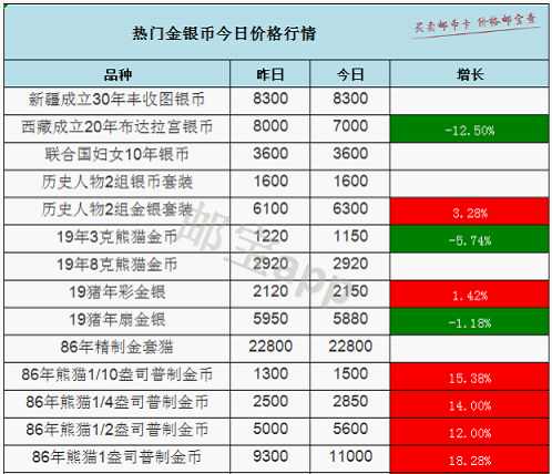 86年熊猫1盎司金币9日最新价格为11000元,8日价格为9300元,涨幅18.28%
